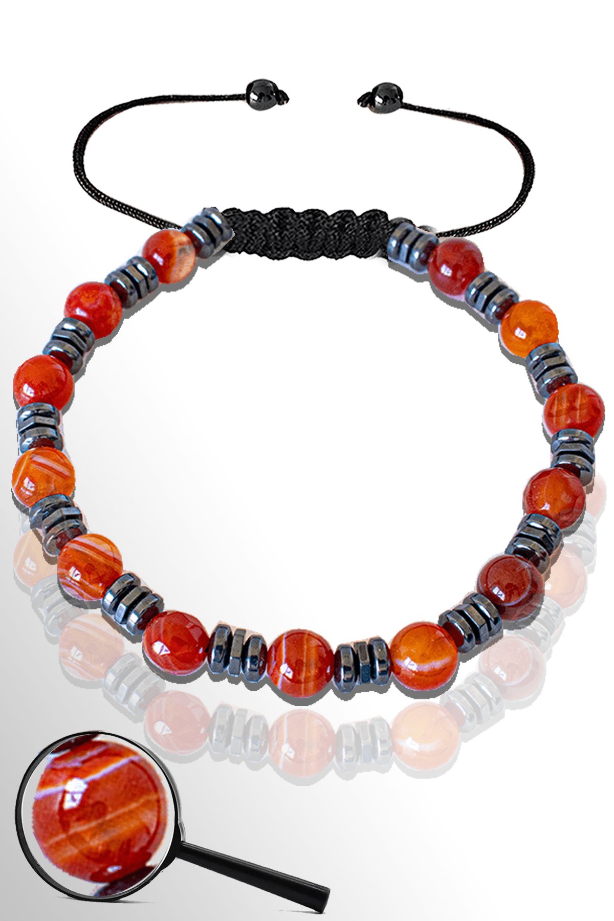 Sertifikalı Hematitli 6 Mm Doğal Karnelyan Akik Taşı Bileklik - Karneol Taşı