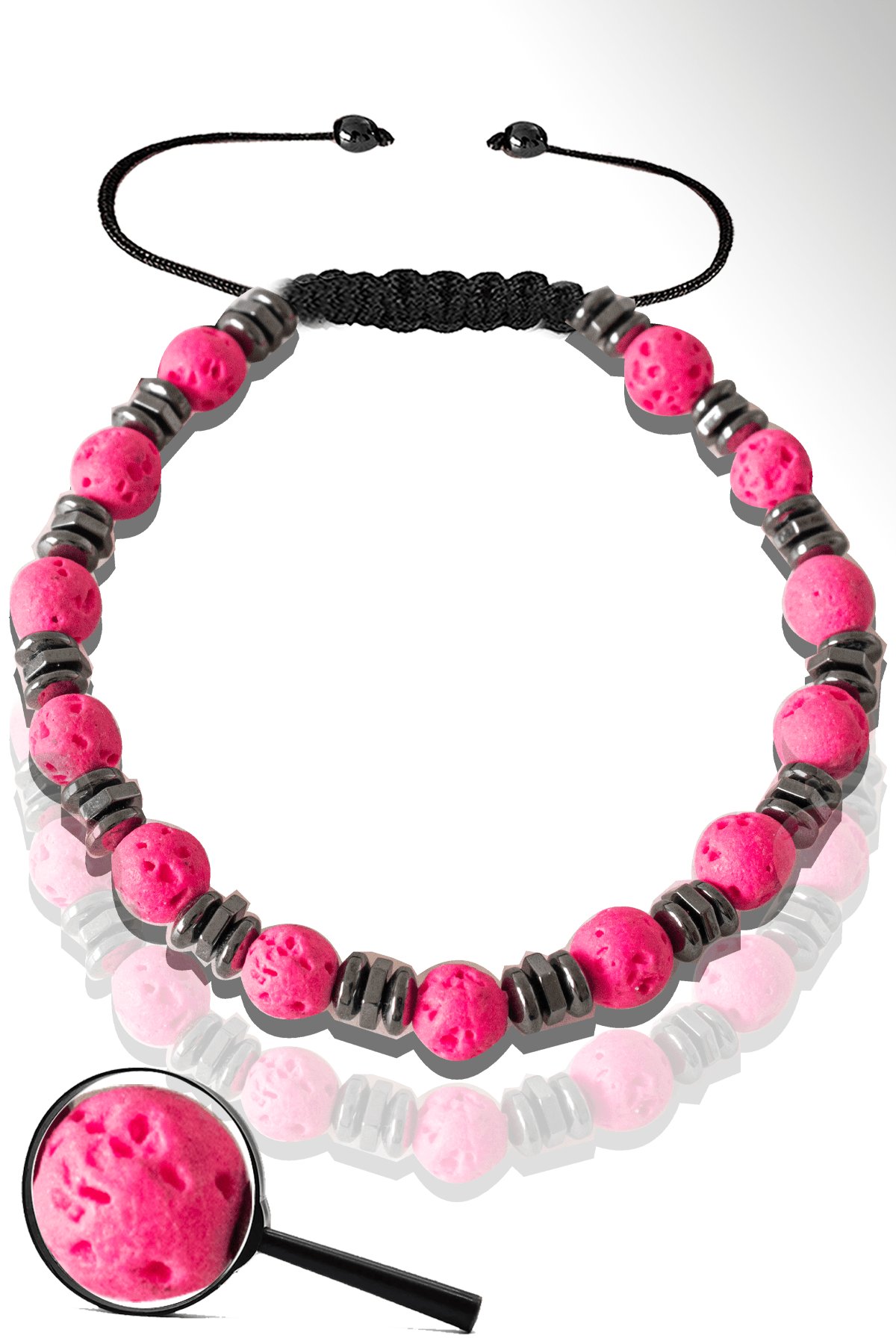 Sertifikalı Hematitli Pembe Volkanik Lav Taşı Bileklik - Yanardağ Taşı