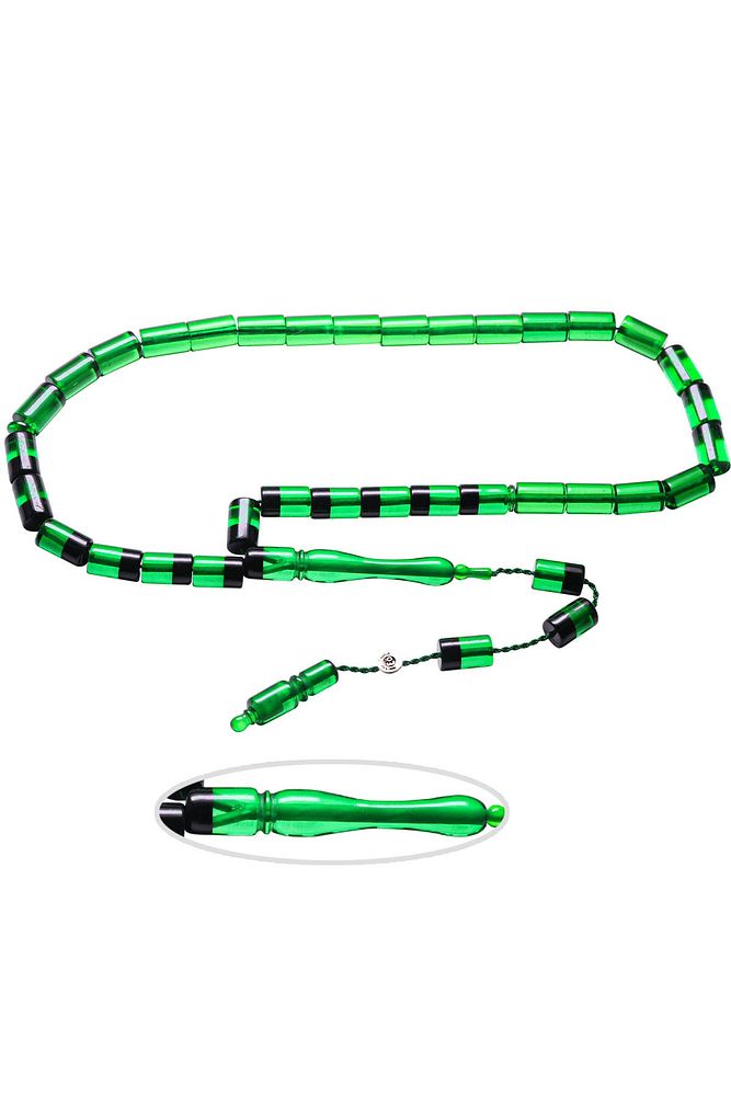 Ürün ya da Doğal Taş Açıklaması; ; (Kuru Torna İşciliği Ultra Parlak Muhteşem Cilalı Uçak Camı); ; Uçak camı tesbih modelleri, \'\'Tesbih Atölyesi\'\' Atölyelerinde ustalarımız tarafından kuru torna işciliği ile elde özen ile tane tane işlenmektedir. Ürünlerimiz el işciliği olduğu için sınırlı sayıda üretilmektedir. Üzerine üç kat el cilası atılmıştır. Tasarımlarımızda kullandığımız ürünler sizlere özel ağaç kutusu ile gönderilecektir.; ; Bu tasarımda; Yeşil ve siyah renkli kesme kesim filexiglass yüksek kaliteli (uçak camı) kullanılmıştır. Asla sararma ve solma yapmayacaktır. Sıralı sistem ile dizilmiştir.; ; Üretildiği Malzeme; Uçak Camı; Renk; Yeşil ve Siyah Renk; Ağırlık; 20-30gr; Tane Şekli; 7x12 mm; Tane Ölçüsü; Kesme Kesim; Toplam Uzunluk; 20-30 cm; İmame ve Püskül Maddesi; Sistemli;