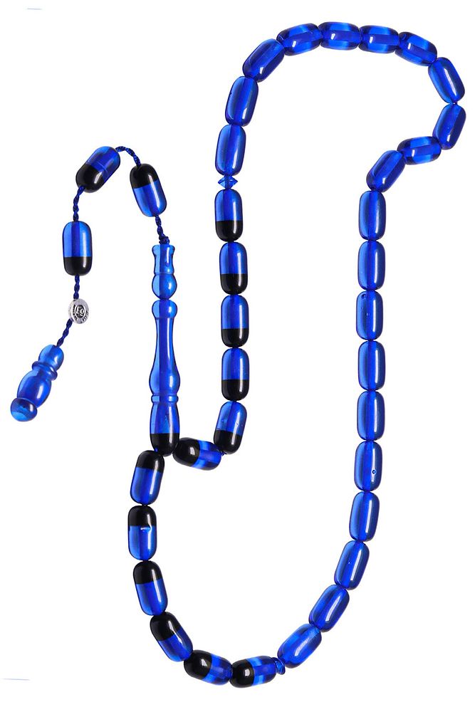 Sertifikalı Imzalı Parlement Mavi Siyah Ateş Kehribar Tesbih