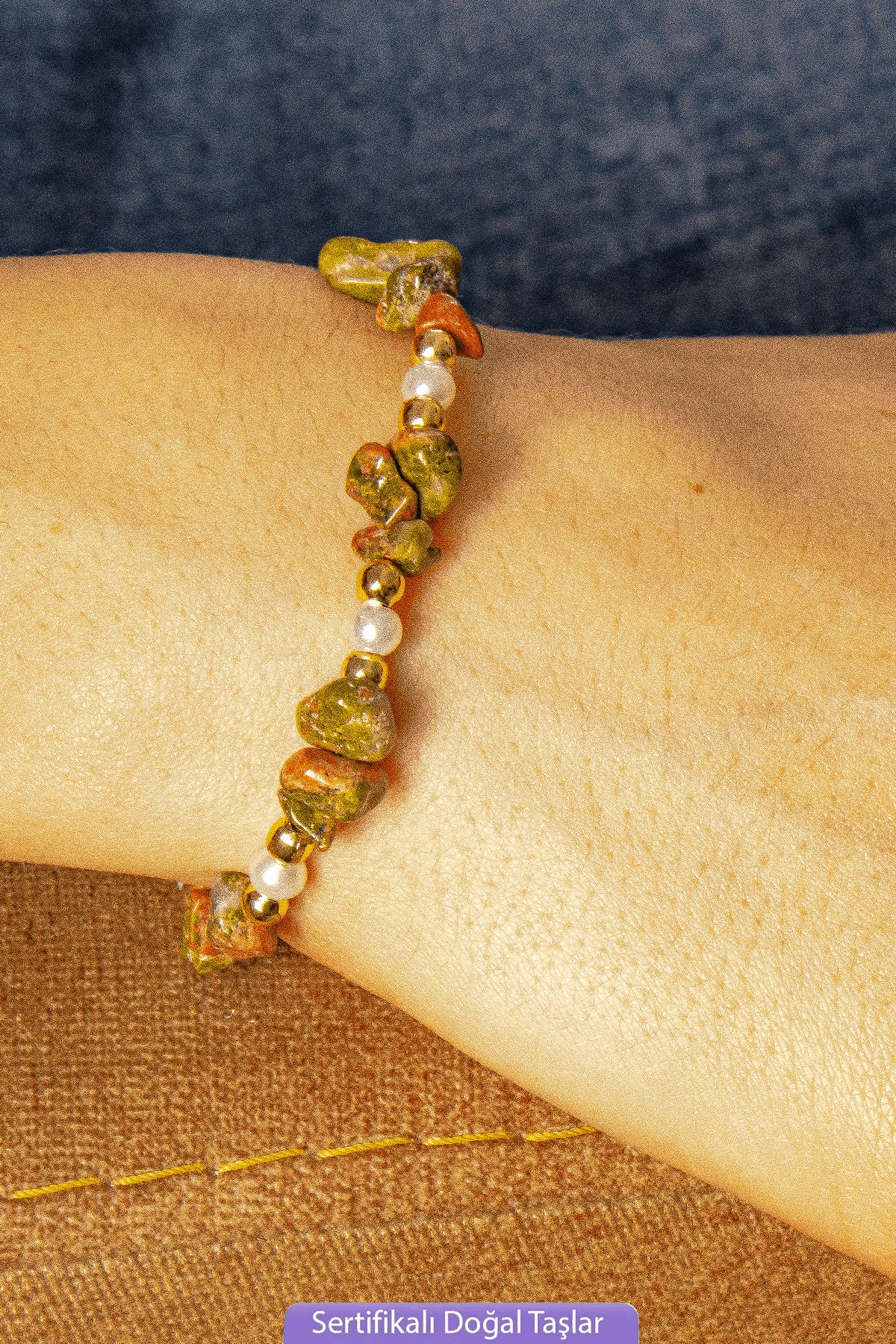 Sertifikalı İncili Unakit Taşlı Doğal Taş Kolye Bileklik Seti