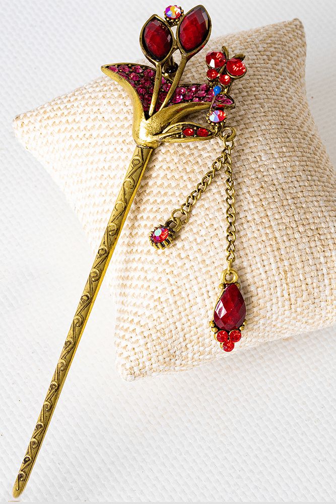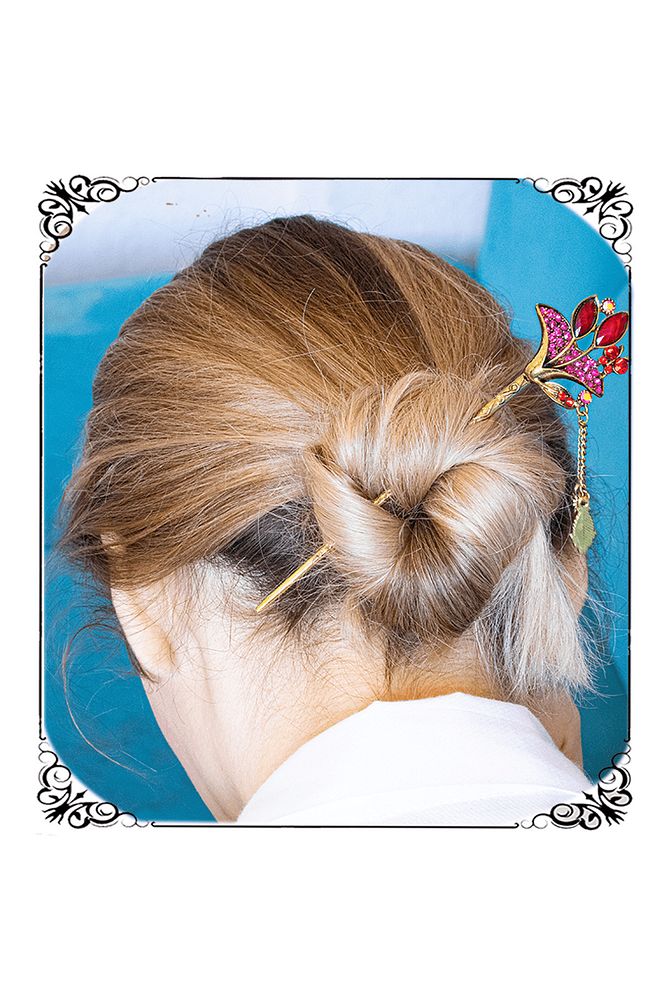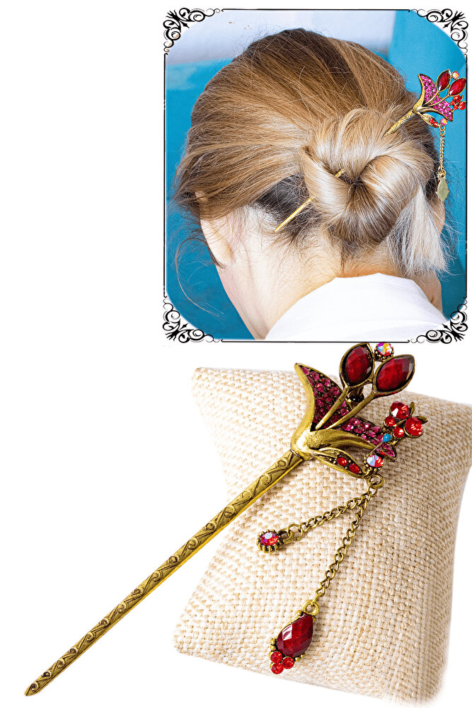 Sertifikalı Japon Stil Topuz Doğal Taş Kırmızı Kuvars Taşı Saç Tokası