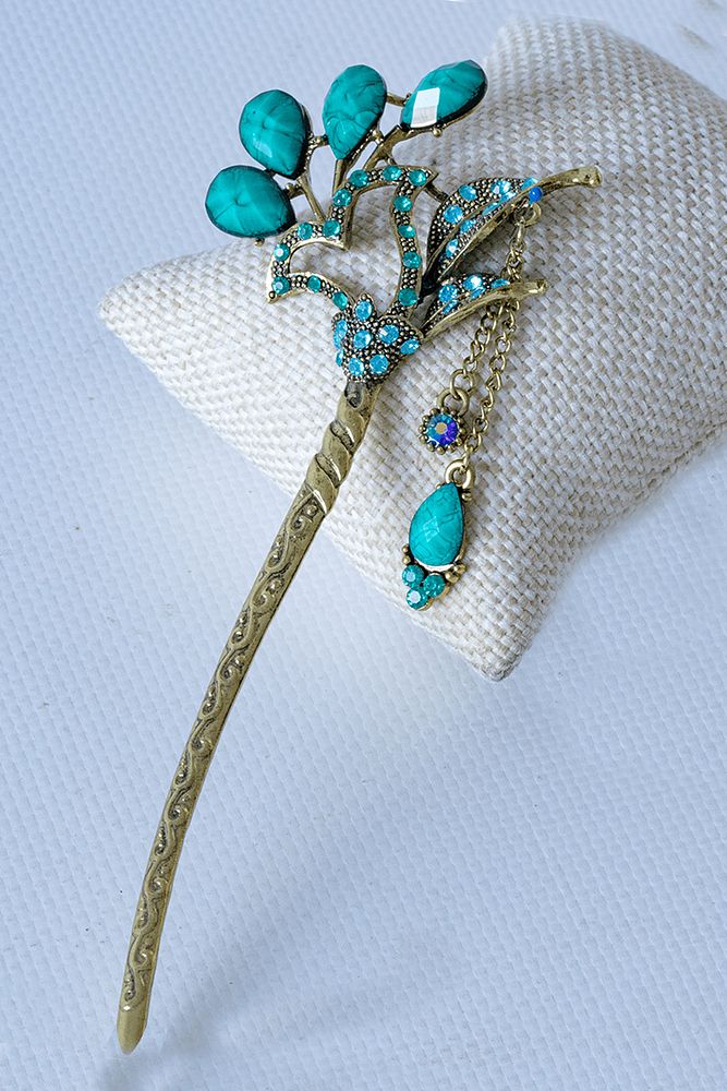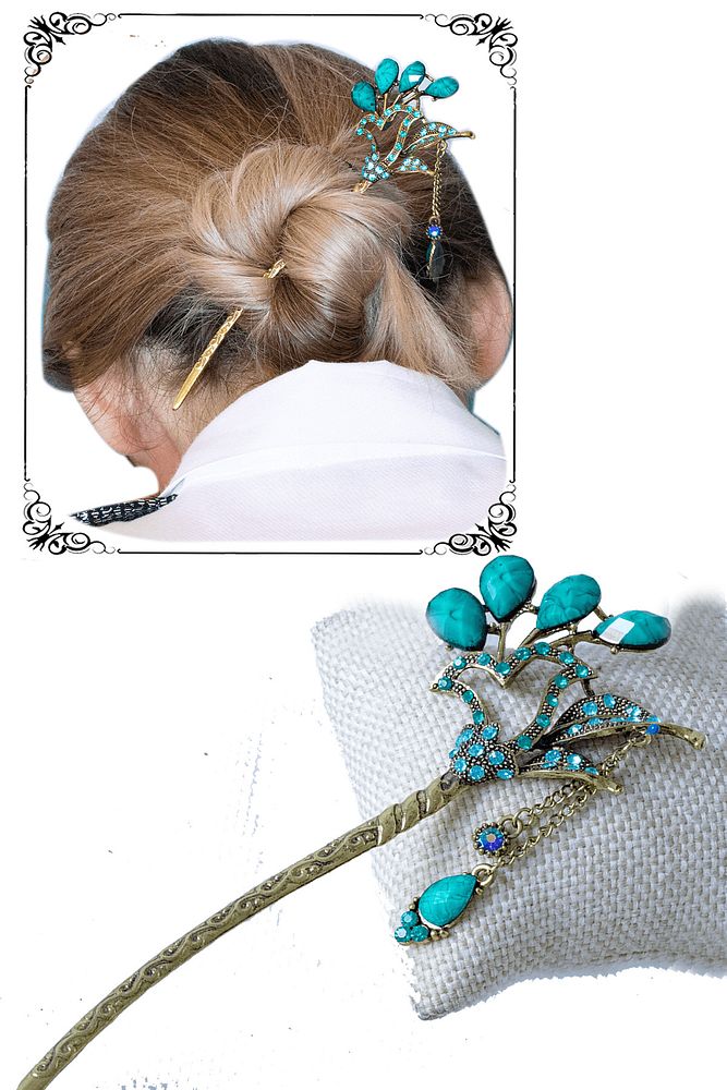 Sertifikalı Japon Stil Topuz Doğal Taş Turkuaz Kuvars Taşlı Saç Tokası