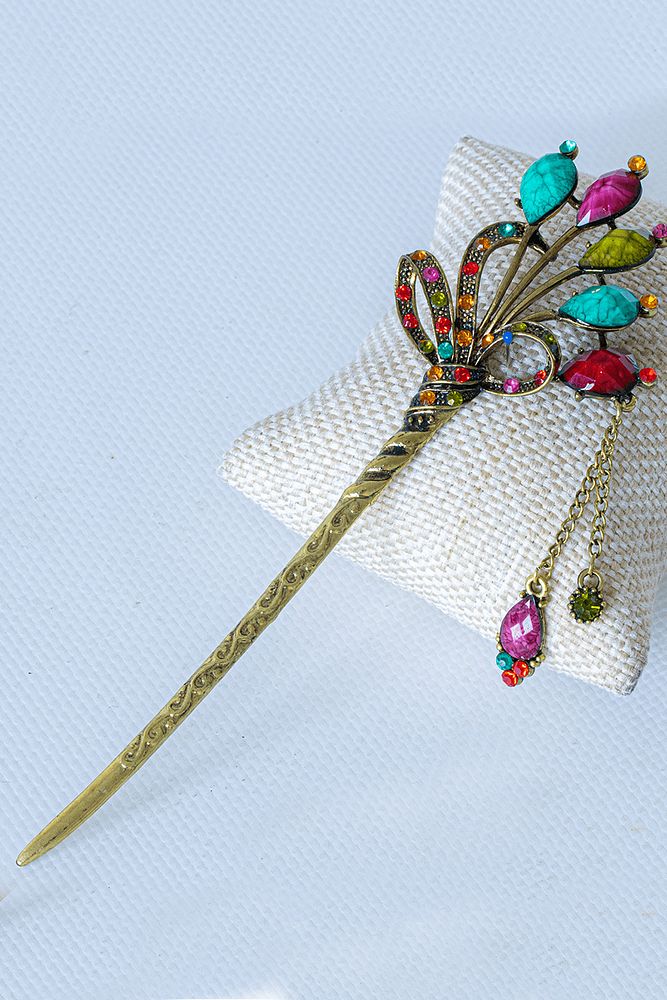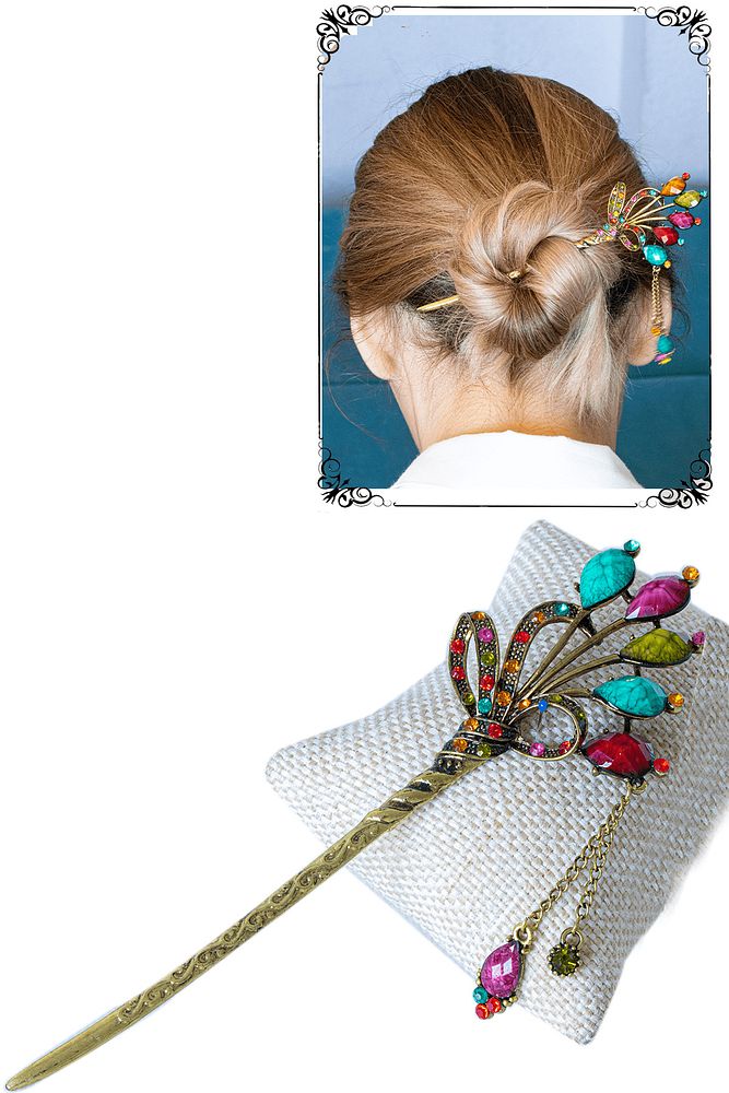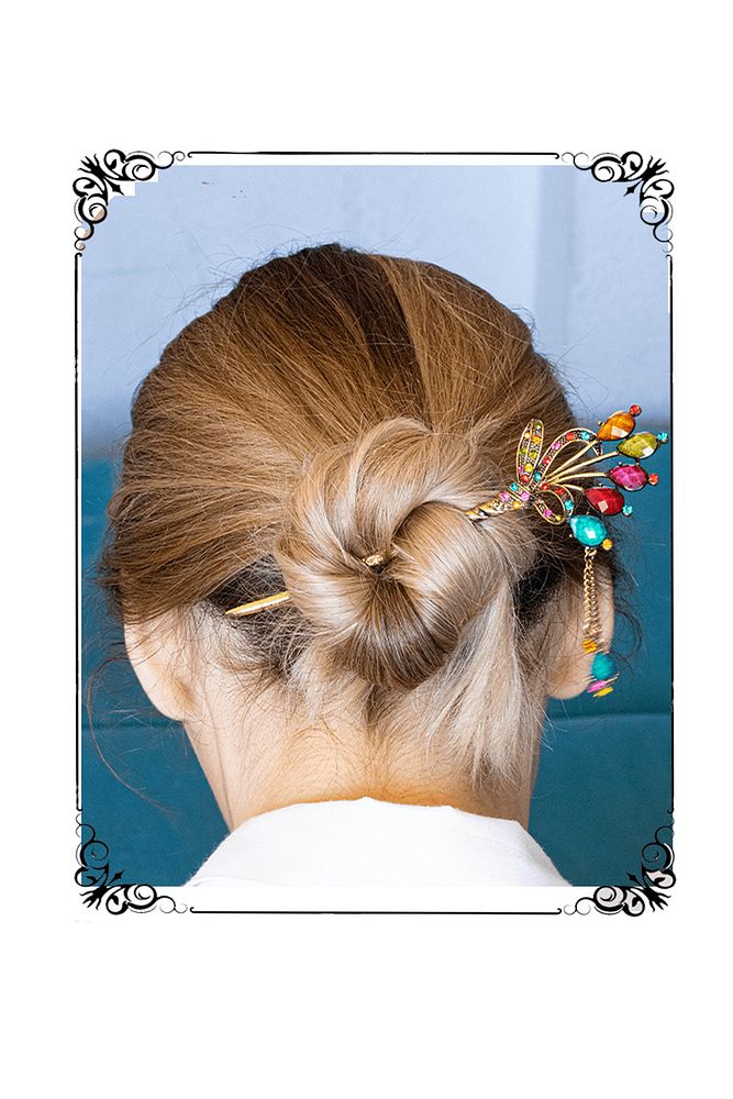 Sertifikalı Japon Stil Topuz Model Çakra Kuvars Taşlı Saç Tokası