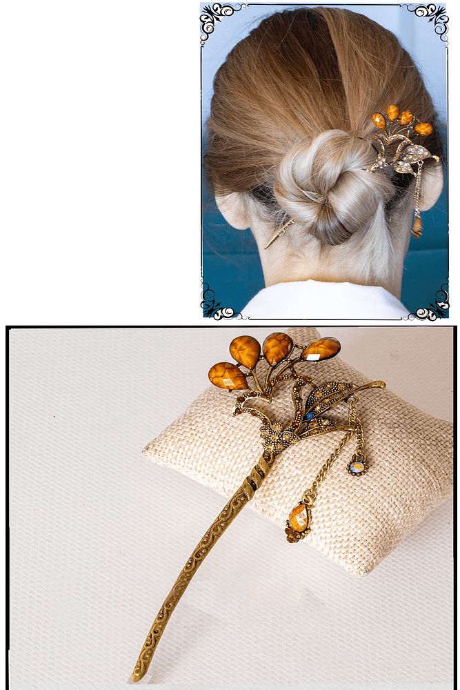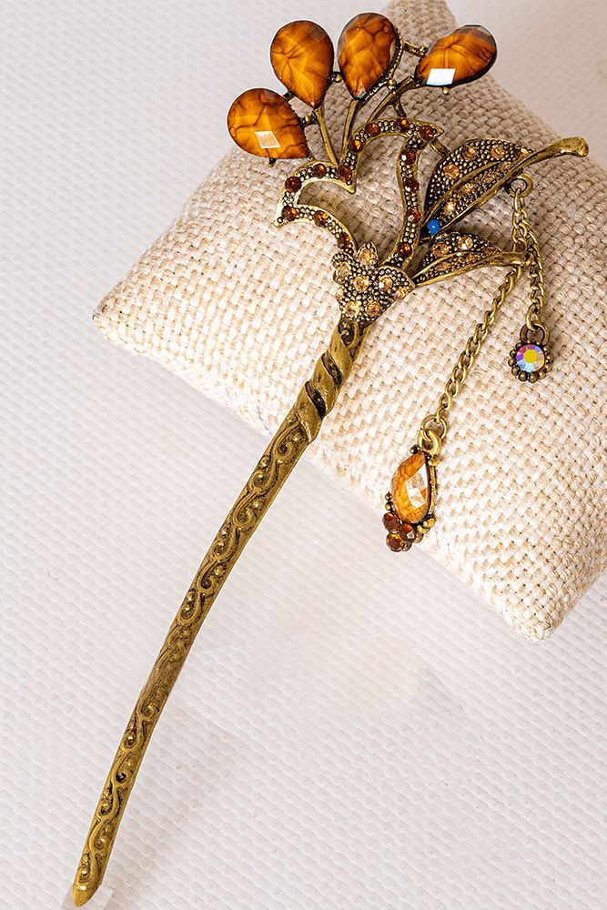 Sertifikalı Japon Stil Topuz Turuncu Doğal Taş Kuvars Taşı Saç Tokası