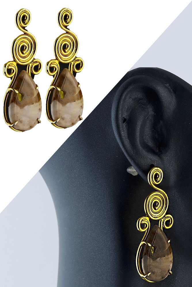Sertifikalı Kahverengi Doğal Yıldız Taşı Jasper Taşlı Küpe