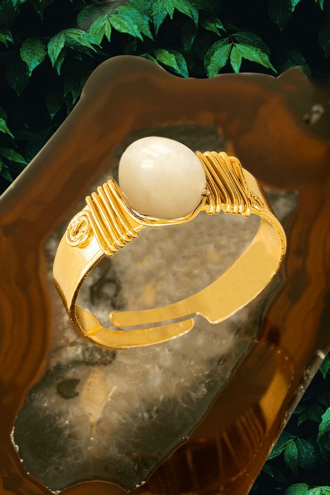 Sertifikalı Kalın Tımbıl Gold Model Sedef Taşı Yüzük - Ayarlamalı