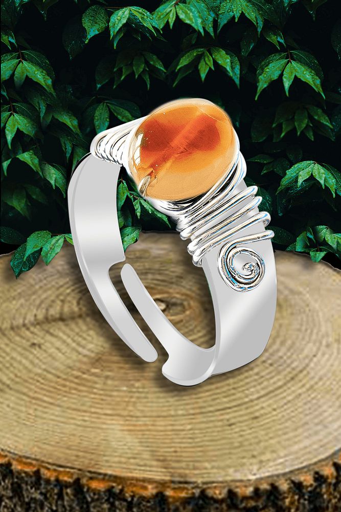 Sertifikalı Karneol - Karnelyan Turuncu Akik Doğal Taş Ayarlanabilir Yüzük – Enerji ve Motivasyon