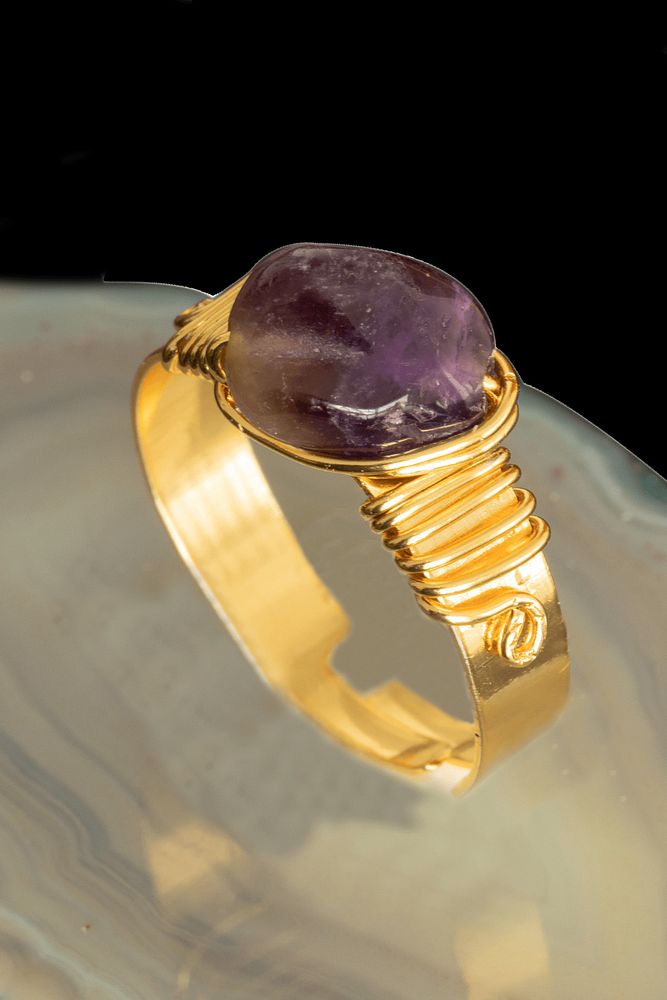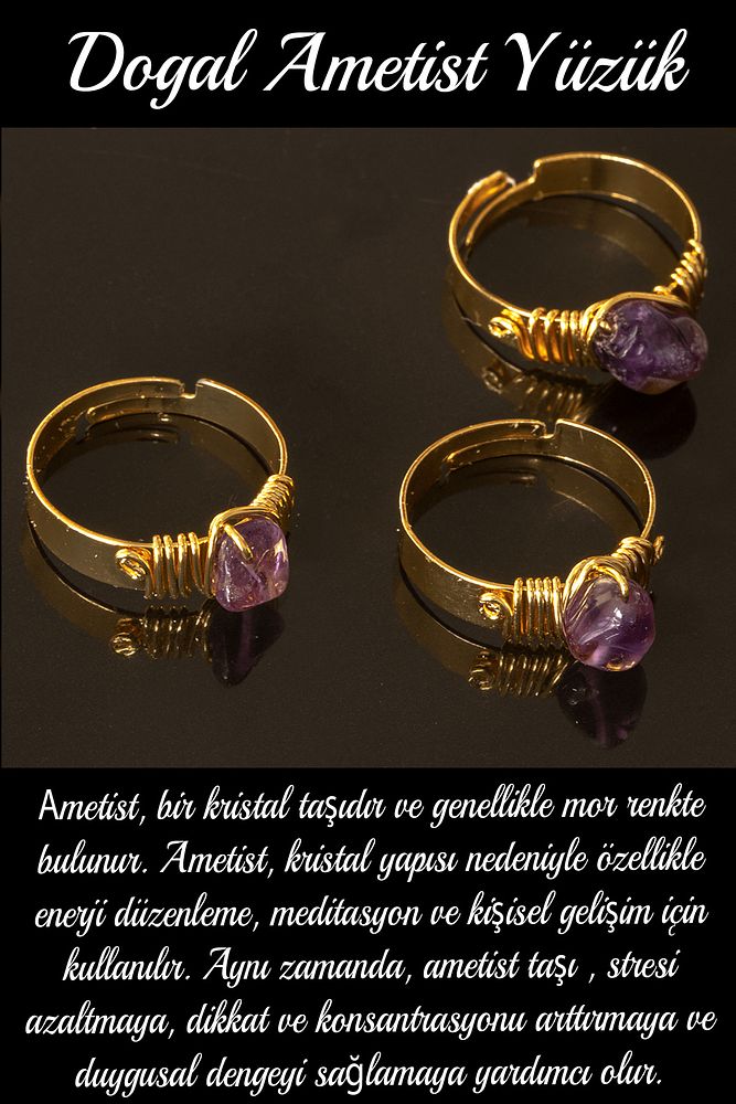 Sertifikalı Kalın Tımbıl Model Ametist Taşı Yüzük - Ayarlamalı