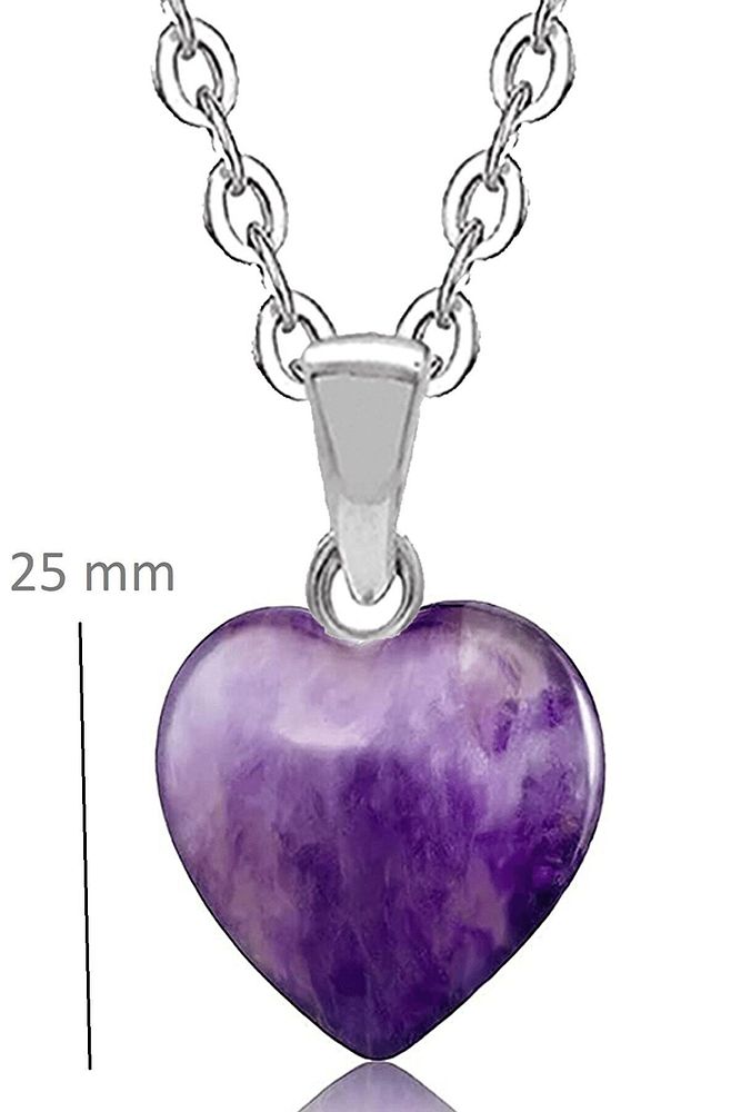 Sertifikalı Kalp Model Ametist Doğal Taş Kolye