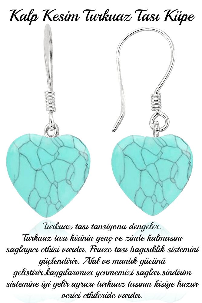 Sertifikalı Kalp Model Firuze (TURKUAZ) Taşı Doğal Taş Küpe
