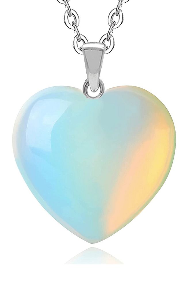 Sertifikalı Kalp Model Gerçek Opal Ay Taşı Kolye