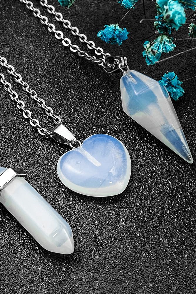 Üretildiği taş : Doğal opal ay Taşı Ana renk : Doğal şeffaf renk Taş ölçüsü : 25 mm - 2,5 cm Zincir ölçüsü : 50 cm 800 ayar gümüş zincir, alerji yapmaz her kadın için uyumludur. Ürün ya da doğal taş açıklaması Üretildiği taş : Doğal opal ay Taşı Ana renk : Doğal şeffaf renk