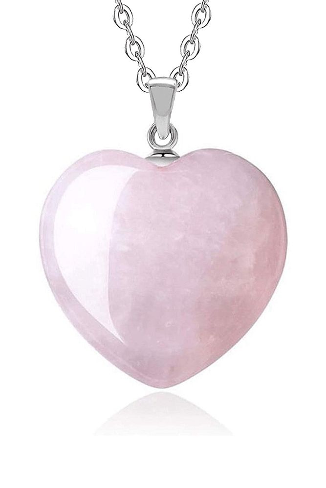 Sertifikalı Kalp Model Gerçek Pembe Kuvars Taşı Kolye