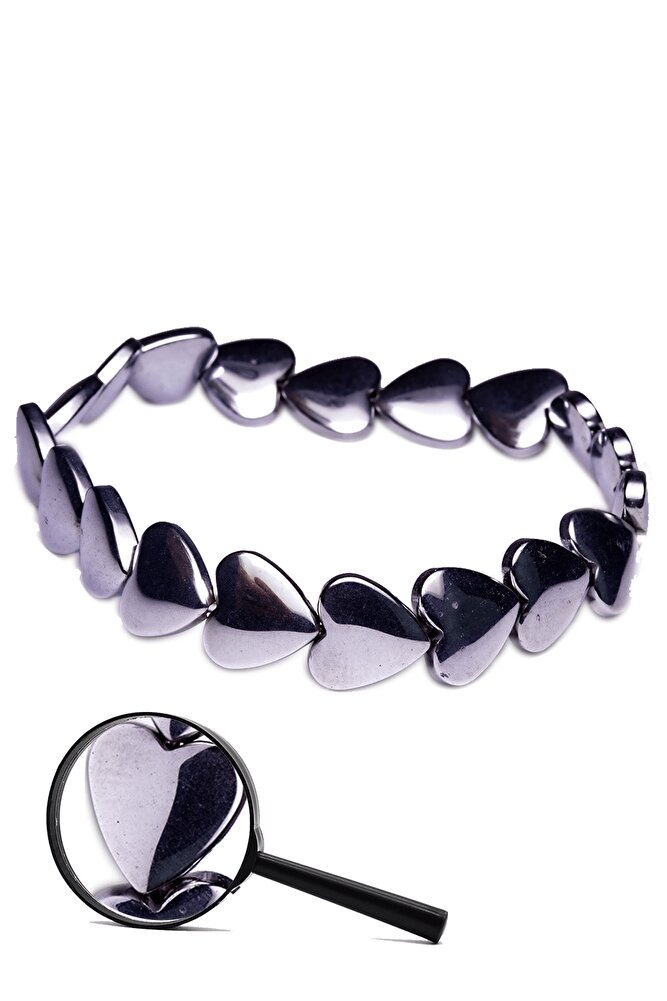 Sertifikalı Kalp Model Hematit Taşı Bileklik