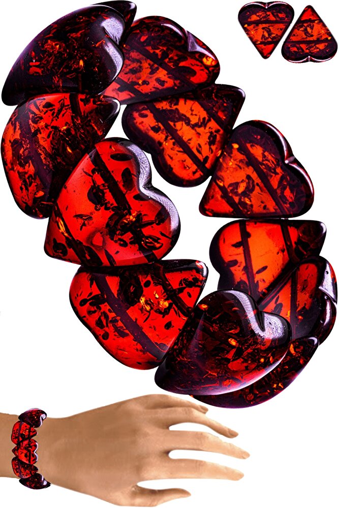 Sertifikalı Kalp Model Kırmızı Unisex Rolex Beyrut Fosilli Damla Kehribar Bileklik