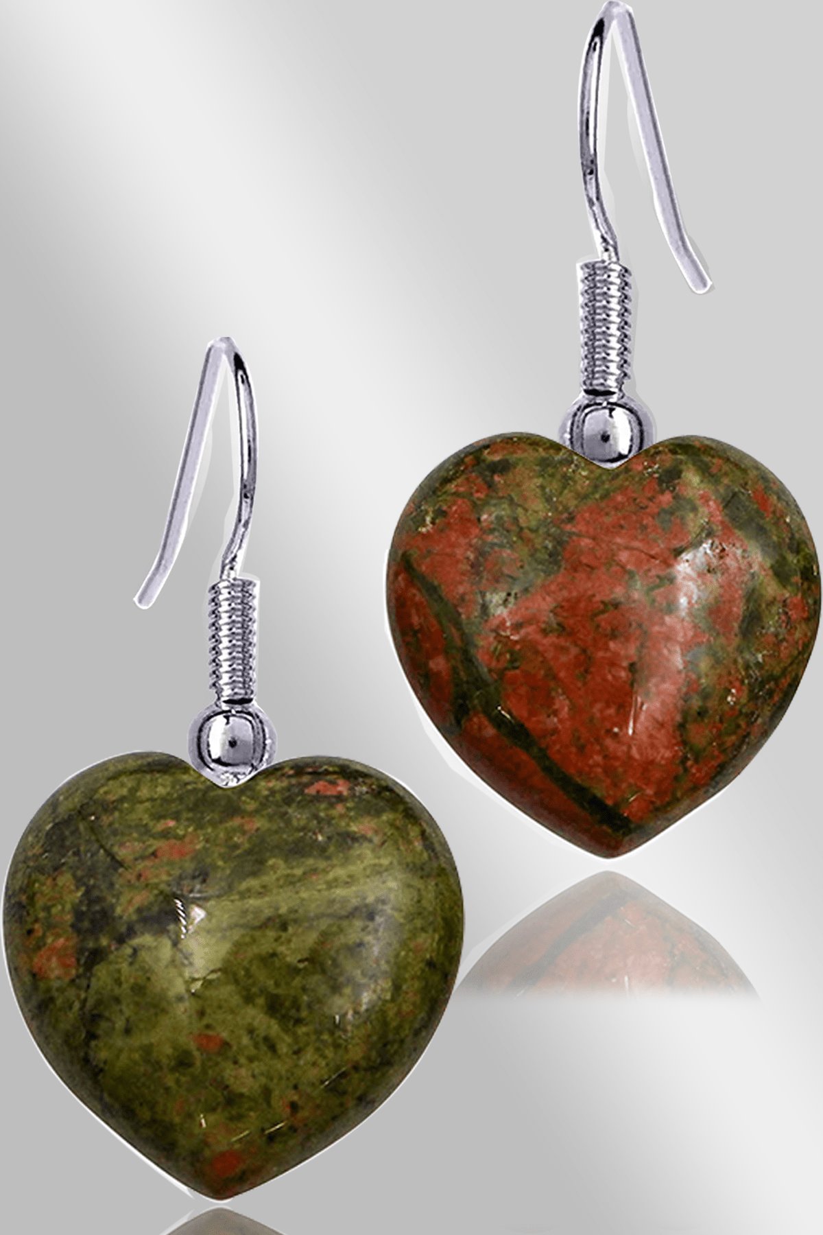 Sertifikalı Kalp Model Unakit Taşı Doğal Taş Küpe