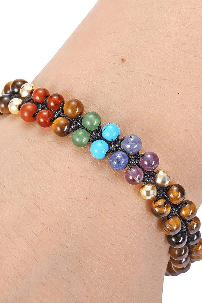 Sertifikalı Kaplan Gözü 7 Çakra Bileklik - Jasper Akik Kaplan Gözü Aventurin Firuze Lapis Ametist