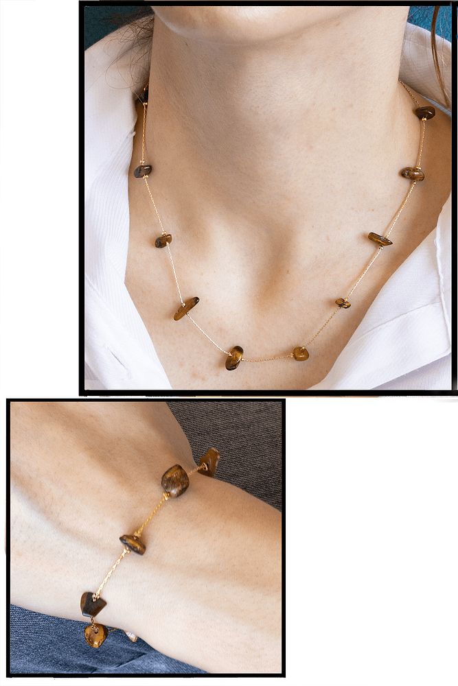 Sertifikalı Kaplan Gözü Taşlı Doğal Taş Kolye Bileklik Seti