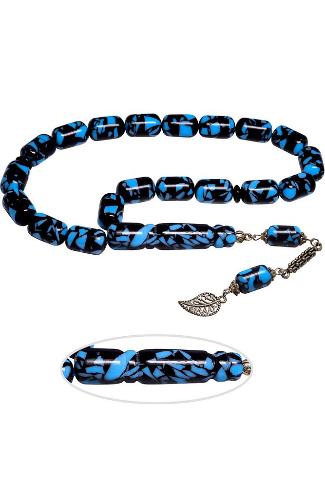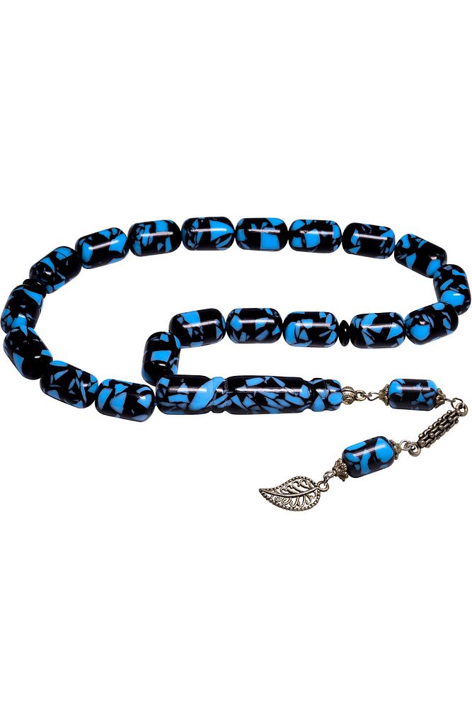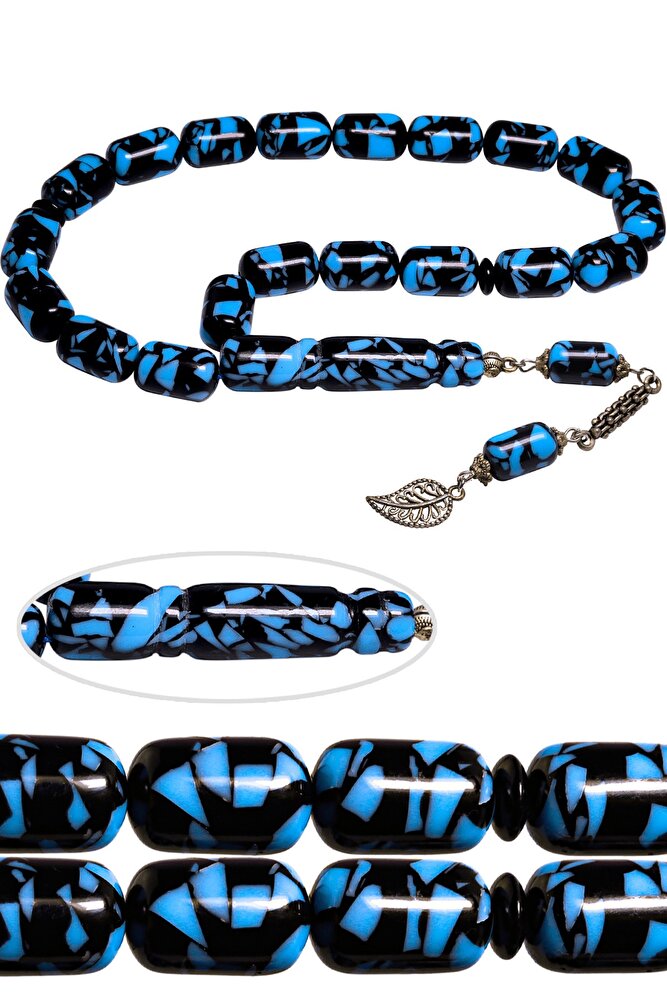 (Para - Sağlık - Pozitif Enerji Taşı); Arizona Toz Kehribar Tesbih modelleri, ''Tesbih Atölyesi'' Atölyelerinde ustalarımız tarafından kuru torna işciliği ile elde özen ile tane tane işlenmektedir. Ürünlerimiz el işciliği olduğu için sınırlı sayıda üretilmektedir. Tasarımlarımızda kullandığımız taşlar Dünya'nın en kaliteli yapay reçinesi kullanmaktayız. Toz kehribar tesbih modellerimizin kalite olarak ateş ve sıkma kehribardan hiç bir farkı yoktur. Aradaki tek fark ateş ve sıkma kehribar tesbihin renk almasıdır.; ; Bu tasarımda; Mavi siyah parçacıklı efe maskot arizona toz kehribar kullanılmıştır. İmame ve Püskül yapımında; Düşük ayar gümüş kullanılmıştır. Çift kaplama rodaj atıldığı için renk atmaz ve kararmaz bir yapıya sahiptir. ; ; Üretildiği Malzeme; Toz Kehribar; Ana Renk; Mavi - Siyah Renk; Ağırlık; 20-30 gr; Tane Şekli; 9.3x14.7 mm; Tane Ölçüsü; Kapsül Kesim Efe Maskot; Toplam Uzunluk; 20-30 cm; İmame ve Püskül Maddesi; Düşük Ayar Gümüş;