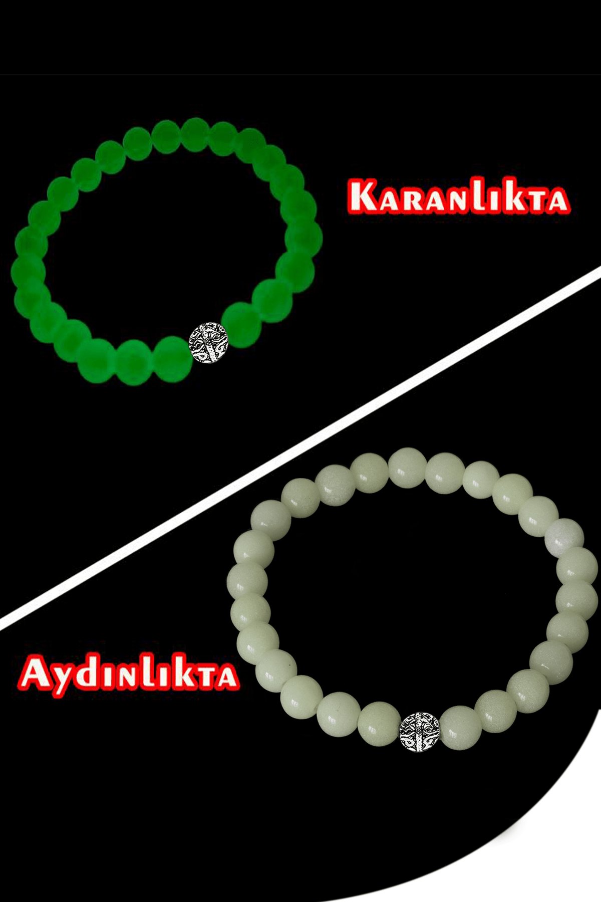 Sertifikalı Karanlıkta Parlayan Fosfor Taşı Bileklik - Gümüş Aparatlı
