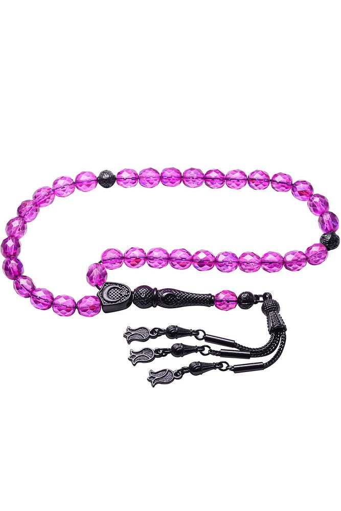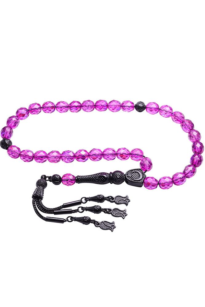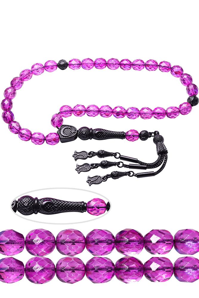 Sertifikalı Kararmaz Püskül Fasetli Mor Doğal Kristal Kuvars Taşı Tesbih