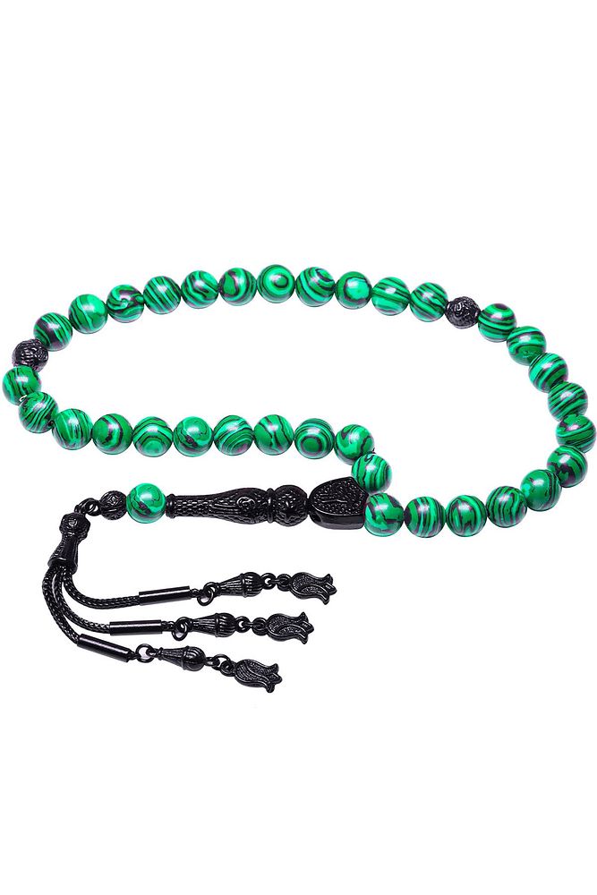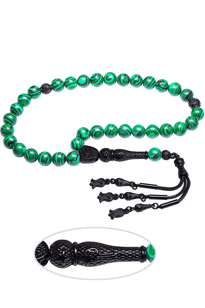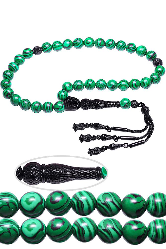 Ürün ya da Doğal Taş Açıklaması (Pozitif Enerji, Para ve Sağlık Taşı) Fransız galalit tesbih modelleri, \'\'Tesbih Atölyesi\'\' Atölyelerinde ustalarımız tarafından kuru torna işciliği ile elde özen ile tane tane işlenmektedir. Ürünlerimiz el işciliği olduğu için sınırlı sayıda üretilmektedir. Tasarımlarımızda kullandığımız taşlar Dünya\'nın en kaliteli taşlarını ithal etmekteyiz. Bu tasarımda; \'\'İnek sütü ile karıştırılan özel yeşil siyah renkli fransız galalit taşından imal edilmiştir. İmame ve Püskül yapımında; Siyah nikel alaşımlı imame ve püskül seti kulanılmıştır. \'Çift kaplama rodaj sistemi uygulandığı için renk atmaz ve kararmaz bir yapıya sahiptir. Üretildiği Taş; Galalit Taşı; Ana Renk; Doğal Renk; Ağırlık; 20-30 gr; Tane Şekli; 8x8 mm; Tane Ölçüsü; Küre Kesim; Toplam Uzunluk; 20-30 cm; İmame ve Püskül Maddesi; Nikel Alaşımlı;