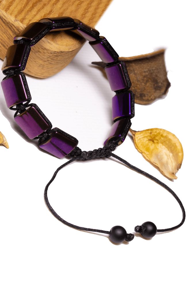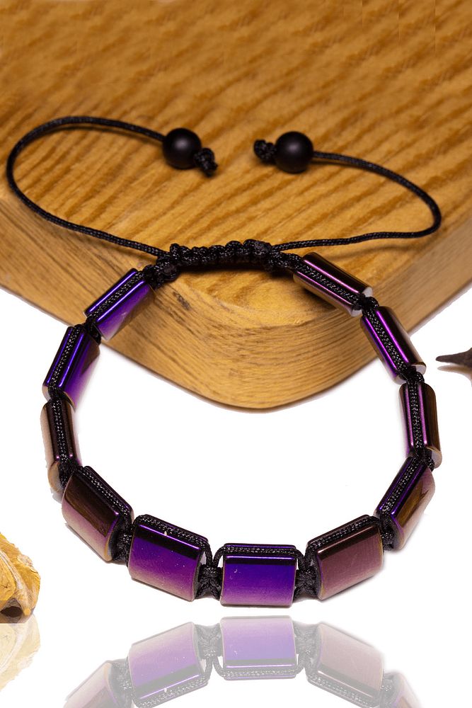 Sertifikalı Kare Kesim Mor Hematit Taşı Bileklik