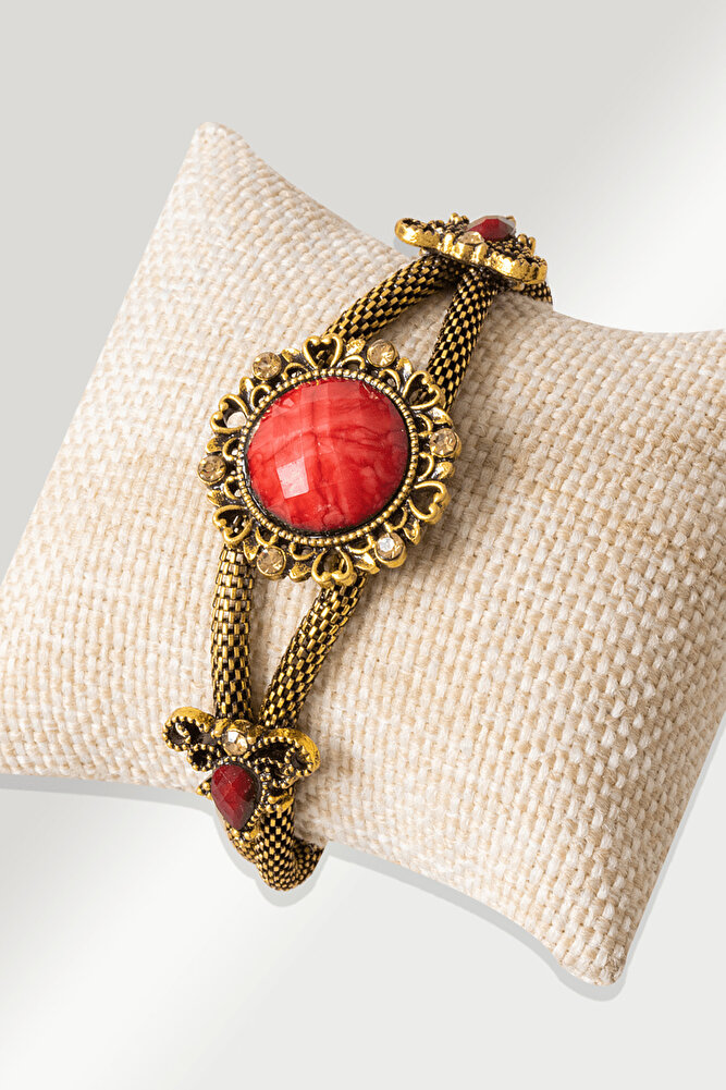 Sertifikalı Kelebek Model Kırmızı Akik Taşı Bileklik - Ayarlamalı