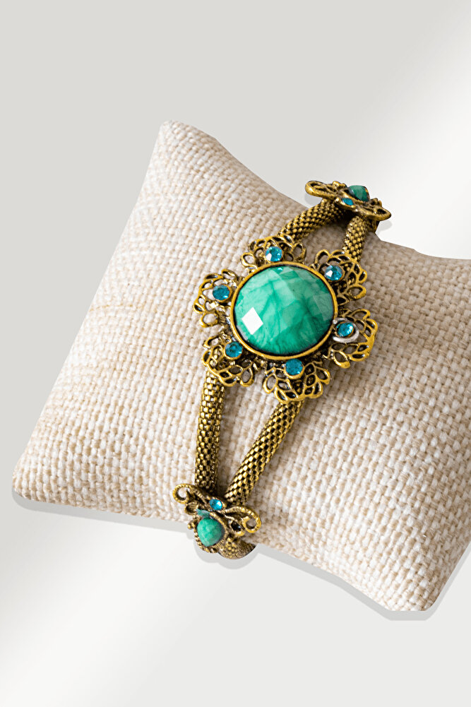 Sertifikalı Kelebek Model Turkuaz Akik Taşı Bileklik - Ayarlamalı