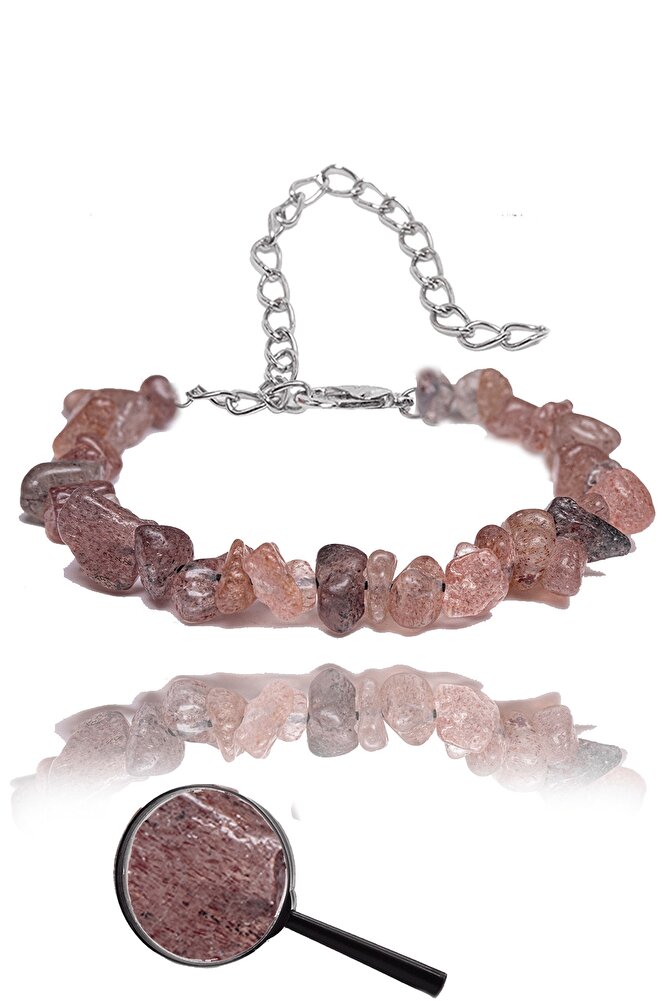 Sertifikalı Kırık Taşlı Çilek Kuvars Taşı Doğal Taş Bileklik