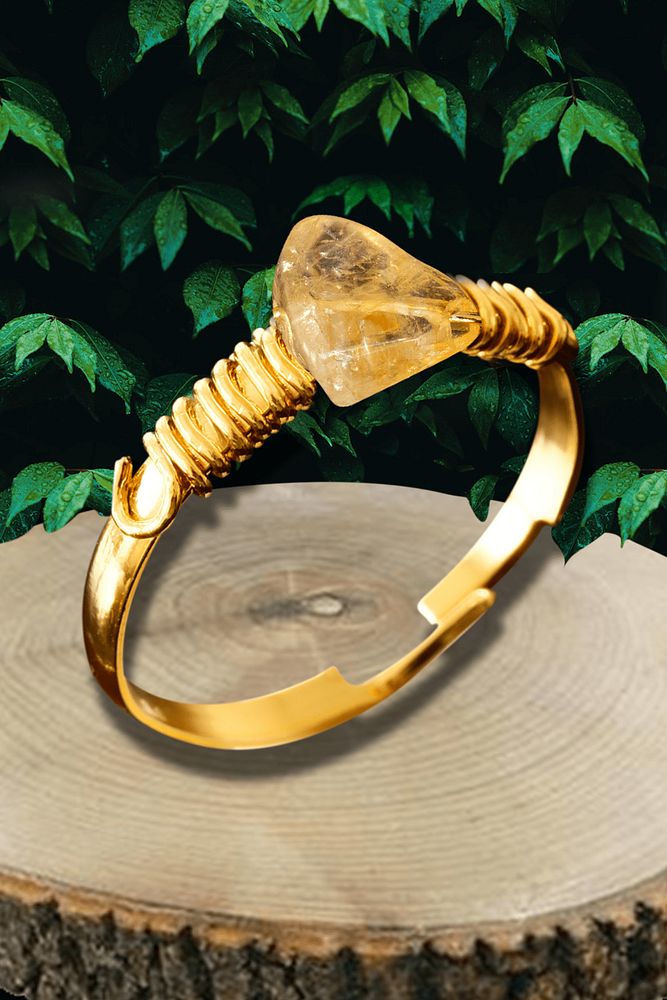 Sertifikalı Kırık Taşlı Gold Model Sitrin Taşı Yüzük - Ayarlamalı