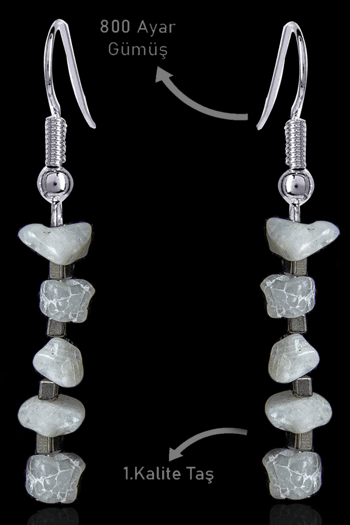 Sertifikalı Kırık Taşlı Model Beyaz Akik Taşı Küpe