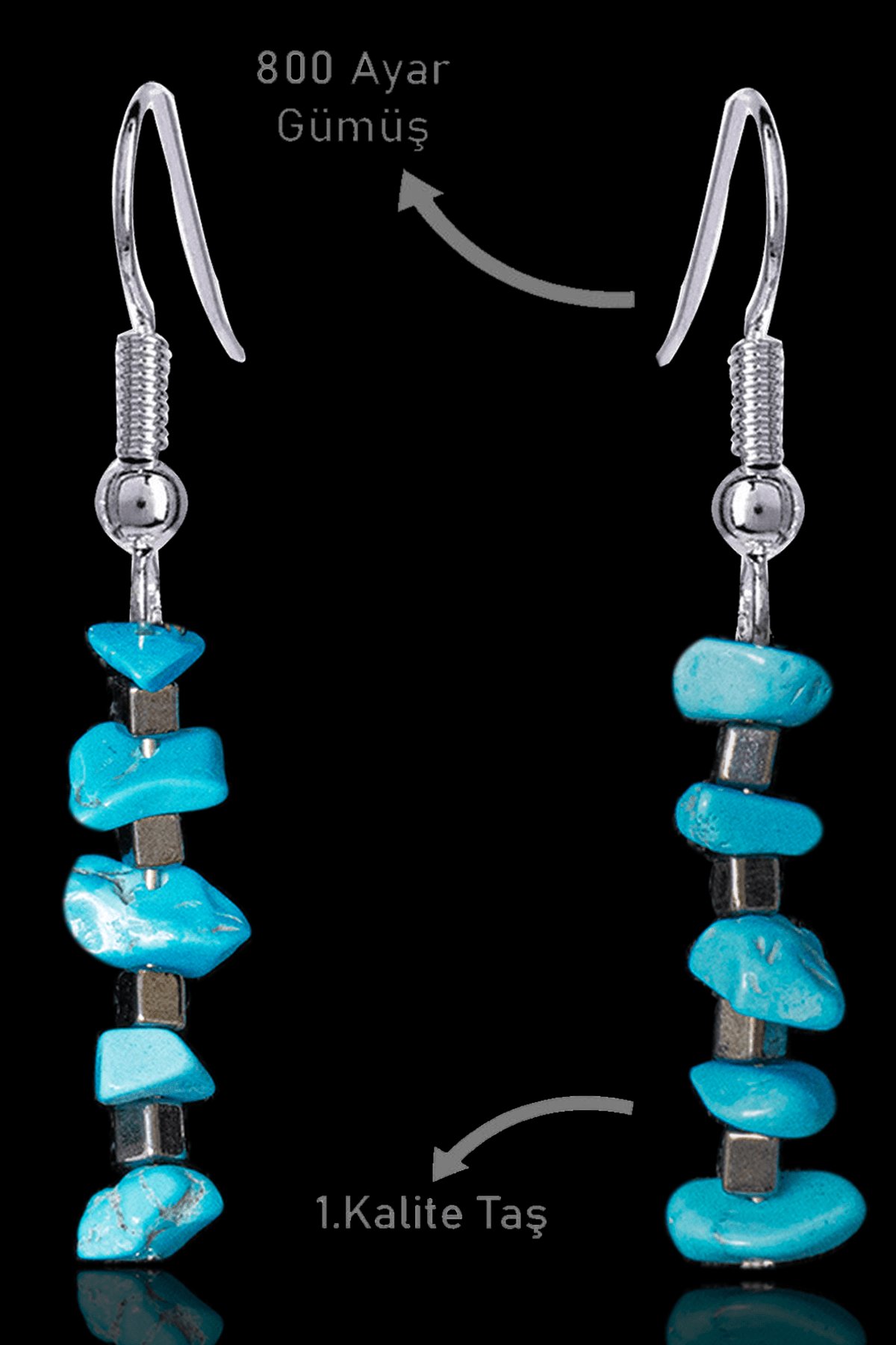 Sertifikalı Kırık Taşlı Model Firuze Taşı Küpe