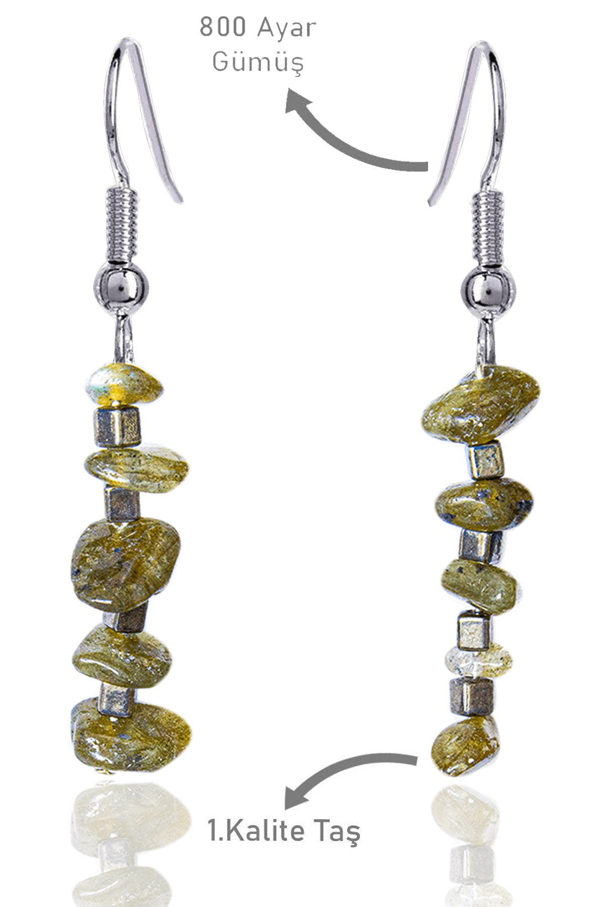Sertifikalı Kırık Taşlı Model Labradorit Taşı Küpe