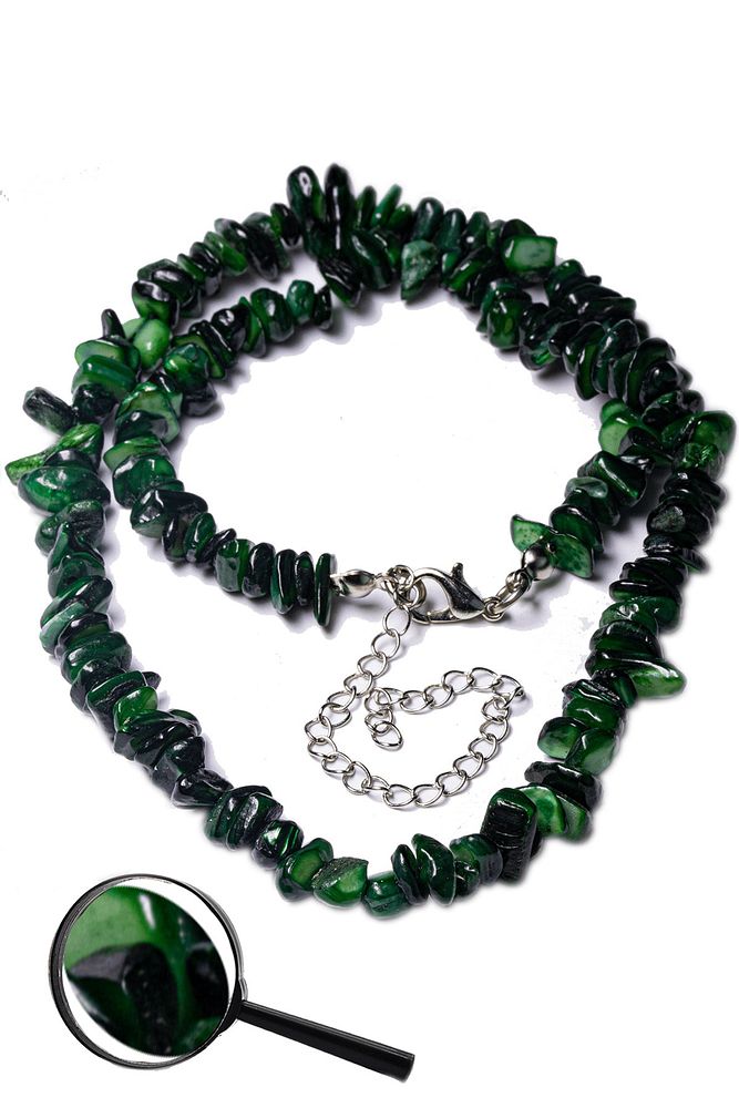 Sertifikalı Kırık Taşlı Yeşil Sedef Taşı Doğal Taş Kolye