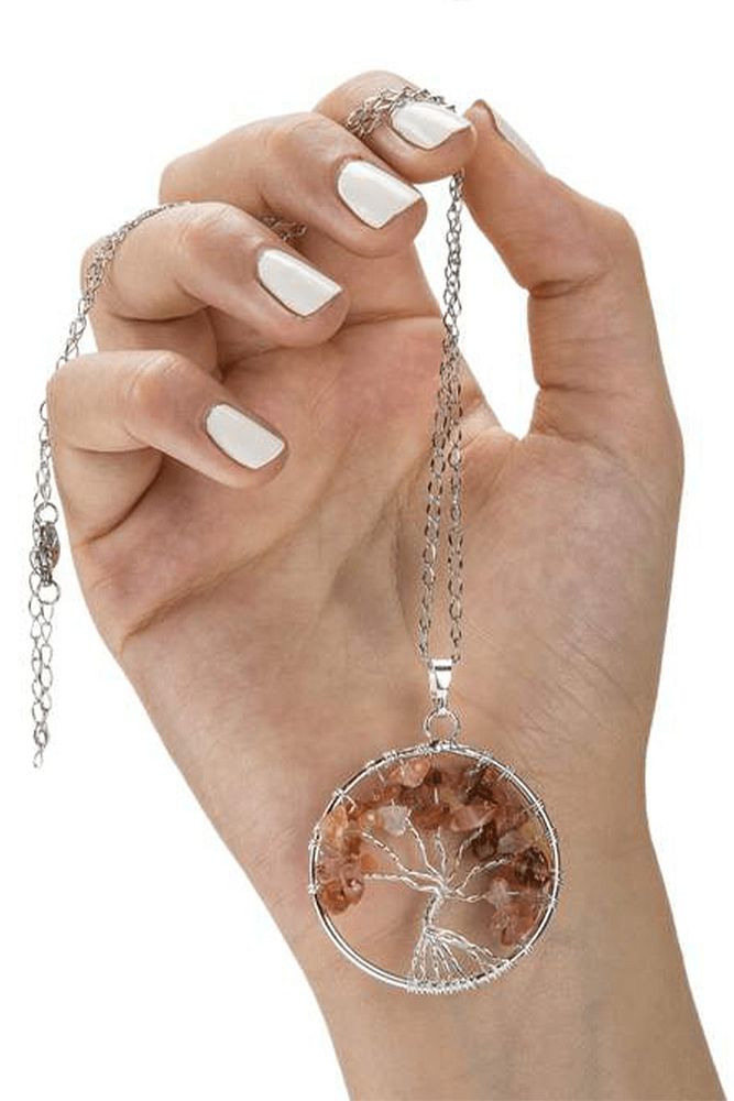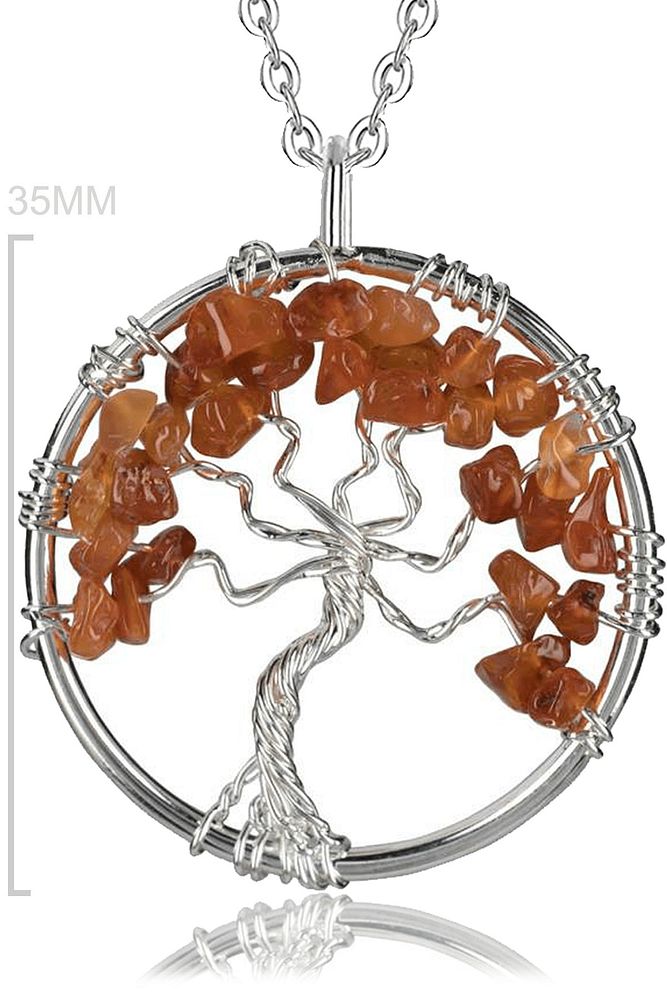 Sertifikalı Kırmızı Doğal Yemen Akik Taşı Hayat Ağacı Kolye