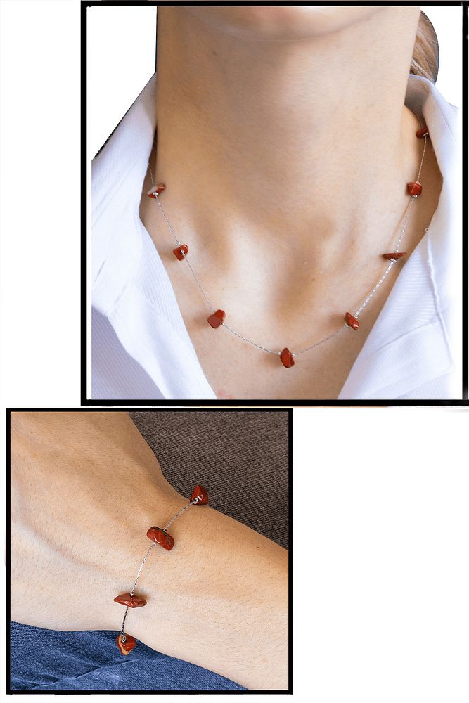 Sertifikalı Kırmızı Jasper Taşlı Doğal Taş Kolye Bileklik Seti