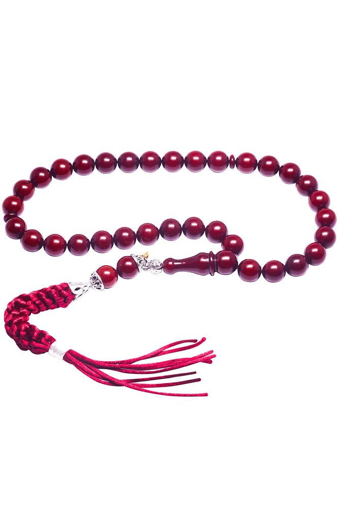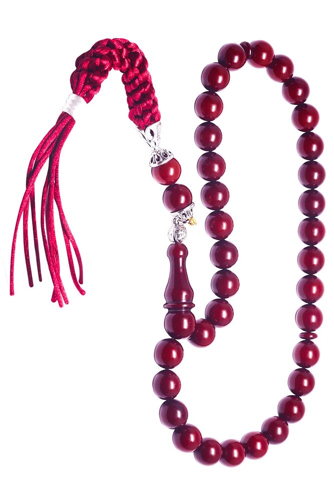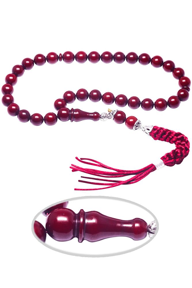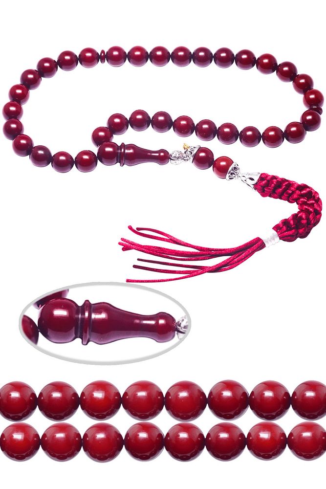 Sertifikalı Kırmızı Renk Osmanlı Benzetmesi Çubuk Sıkma Kehribar Tesbih