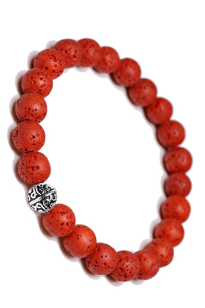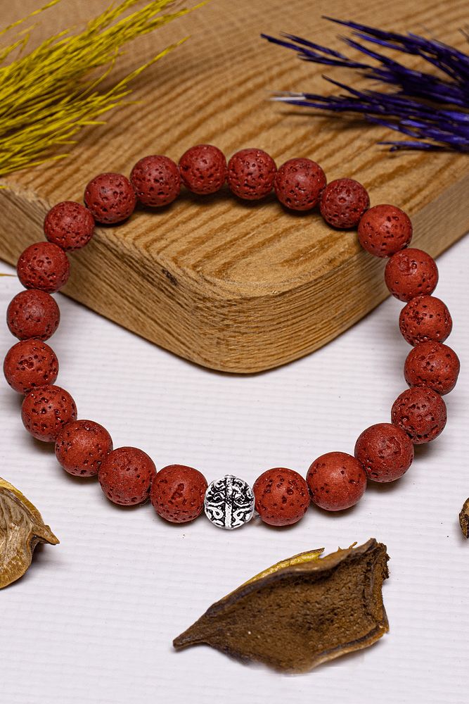 Sertifikalı Kırmızı Volkanik Lav Taşı Bileklik - Gümüş Aparatlı