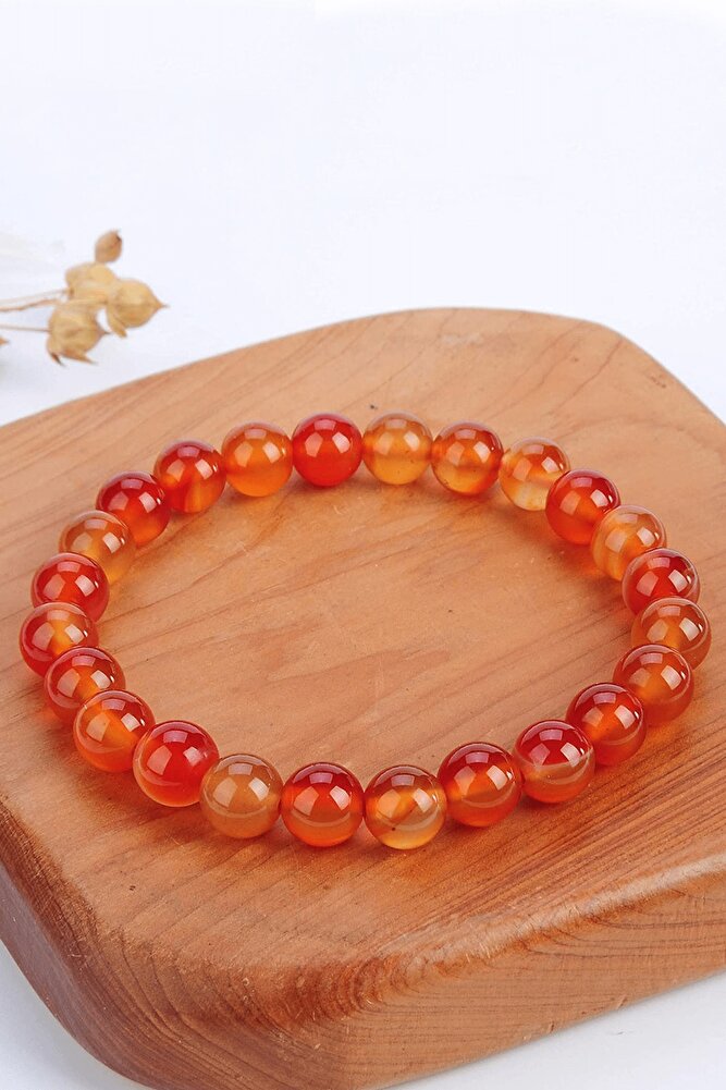 Sertifikalı Kızıl Aaa Gerçek Karnelyan Karneol Akik Taşı Bileklik - Gümüş Aparat