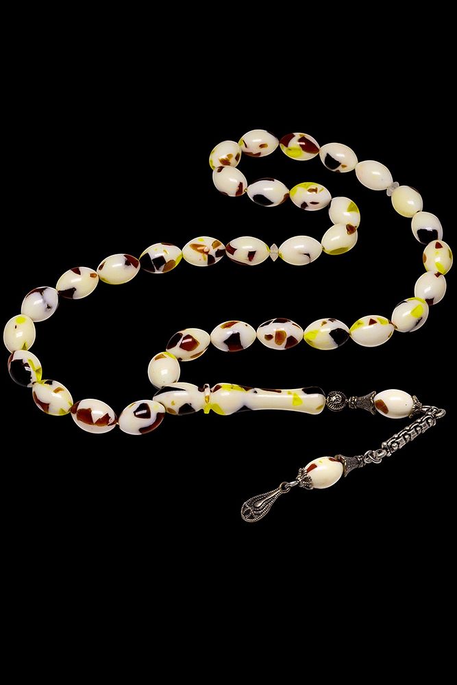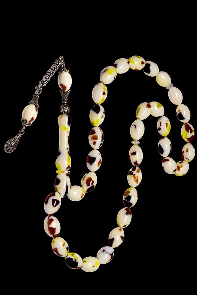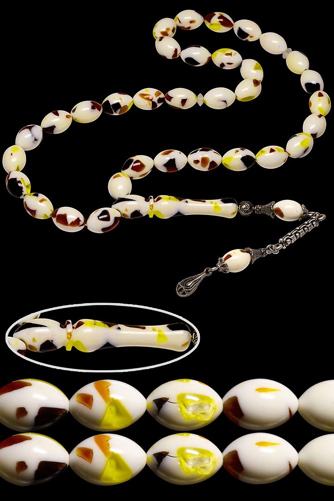 Ürün ya da Doğal Taş Açıklaması (Para - Sağlık - Pozitif Enerji Taşı) Toz Kehribar Tesbih modelleri, ''Tesbih Atölyesi'' Atölyelerinde ustalarımız tarafından kuru torna işciliği ile elde özen ile tane tane işlenmektedir. Ürünlerimiz el işciliği olduğu için sınırlı sayıda üretilmektedir. Tasarımlarımızda kullandığımız taşlar Dünya'nın en kaliteli yapay reçinesi kullanmaktayız. Toz kehribar tesbih modellerimizin kalite olarak ateş ve sıkma kehribardan hiç bir farkı yoktur. Aradaki tek fark ateş ve sıkma kehribar tesbihin renk almasıdır. Bu tasarımda; Parçacıklı çeşitli renklerden oluşan toz kehribar kullanılmıştır. İmame ve Püskül yapımında; Düşük ayar gümüş kullanılmıştır. Çift kaplama rodaj atıldığı için renk atmaz ve kararmaz bir yapıya sahiptir. Üretildiği Malzeme; Toz Kehribar; Ana Renk; Çeşitli Renk; Ağırlık; 20-30 gr; Tane Şekli; 7.7x11.5 mm; Tane Ölçüsü; Beyzi Kesim; Toplam Uzunluk; 20-30 cm; İmame ve Püskül Maddesi; Düşük Ayar Gümüş;