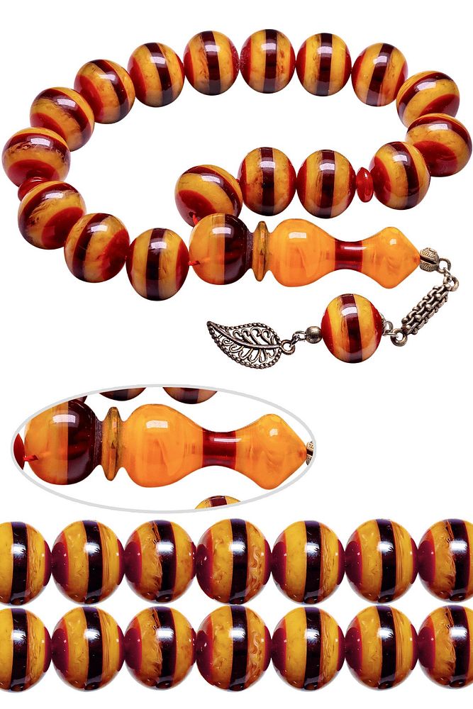 Ürün ya da Doğal Taş Açıklaması; ; (Para - Sağlık - Pozitif Enerji Taşı); ; Sürmeli Toz Kehribar Efe Maskot Tesbih modelleri, \'\'Tesbih Atölyesi\'\' Atölyelerinde ustalarımız tarafından kuru torna işciliği ile elde özen ile tane tane işlenmektedir. Ürünlerimiz el işciliği olduğu için sınırlı sayıda üretilmektedir. Tasarımlarımızda kullandığımız taşlar Dünya\'nın en kaliteli yapay reçinesi kullanmaktayız. Efe Maskot Toz kehribar tesbih modellerimizin kalite olarak ateş ve sıkma kehribardan hiç bir farkı yoktur. Aradaki tek fark ateş ve sıkma kehribar tesbihin renk almasıdır.; ; Bu tasarımda; Sürmeli renkli efe maskot toz kehribar kullanılmıştır. İmame ve Püskül yapımında; Düşük ayar gümüş kullanılmıştır. Çift kaplama rodaj atıldığı için renk atmaz ve kararmaz bir yapıya sahiptir. ; ; Üretildiği Malzeme; Toz Kehribar; Ana Renk; Kırmızı - Sarı Renk; Ağırlık; 20-30 gr; Tane Şekli; 11.6x13.8 mm; Tane Ölçüsü; Küre Kesim; Toplam Uzunluk; 20-30 cm; İmame ve Püskül Maddesi; Düşük Ayar Gümüş;