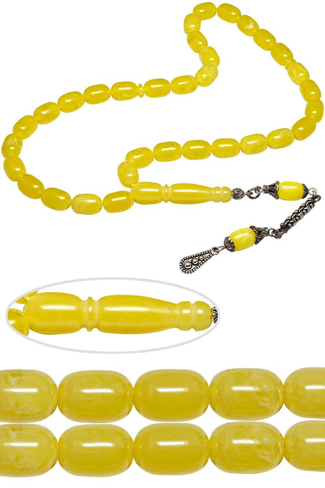 (Para - Sağlık - Pozitif Enerji Taşı); ; Beyrut Damla Kehribar Tesbih modelleri, ''Tesbih Atölyesi'' Atölyelerinde ustalarımız tarafından kuru torna işciliği ile elde özen ile tane tane işlenmektedir. Ürünlerimiz el işciliği olduğu için sınırlı sayıda üretilmektedir. Tasarımlarımızda kullandığımız taşlar Dünya'nın en kaliteli yapay reçinesi kullanmaktayız. Toz kehribar tesbih modellerimizin kalite olarak ateş ve sıkma kehribardan hiç bir farkı yoktur. Aradaki tek fark ateş ve sıkma kehribar tesbihin renk almasıdır.; ; Bu tasarımda; Beyrut damla kehribar kullanılmıştır. İmame ve Püskül yapımında; Düşük ayar gümüş kullanılmıştır. Çift kaplama rodaj atıldığı için renk atmaz ve kararmaz bir yapıya sahiptir. ; Üretildiği Malzeme; Beyrut Damla Kehribar; Ana Renk; Sarı Renk; Ağırlık; 20-30 gr; Tane Şekli; 6.5x10 mm; Tane Ölçüsü; Kapsül Kesim; Toplam Uzunluk; 20-30 cm; İmame ve Püskül Maddesi; Düşük Ayar Gümüş;