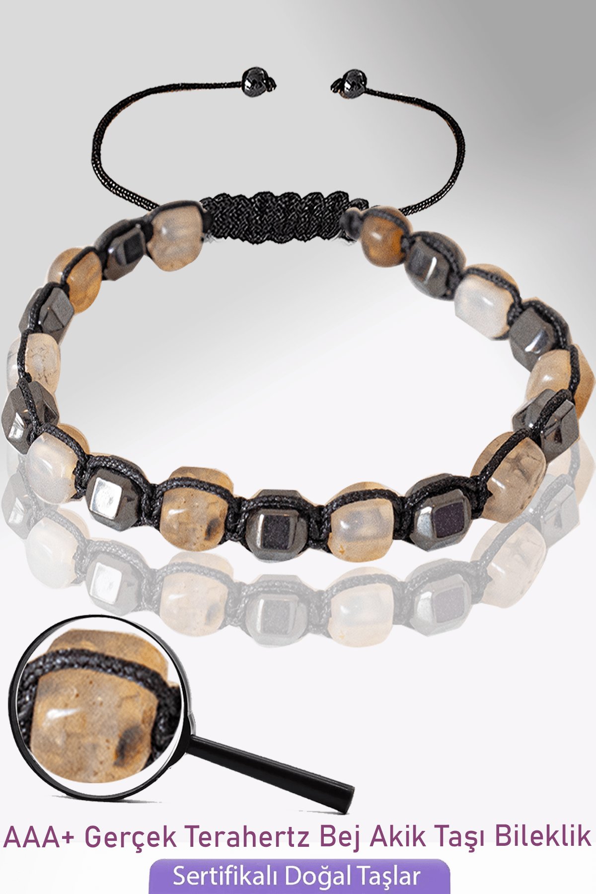 Sertifikalı Küp Model Bej Akik Taşı Bileklik - Ayarlamalı