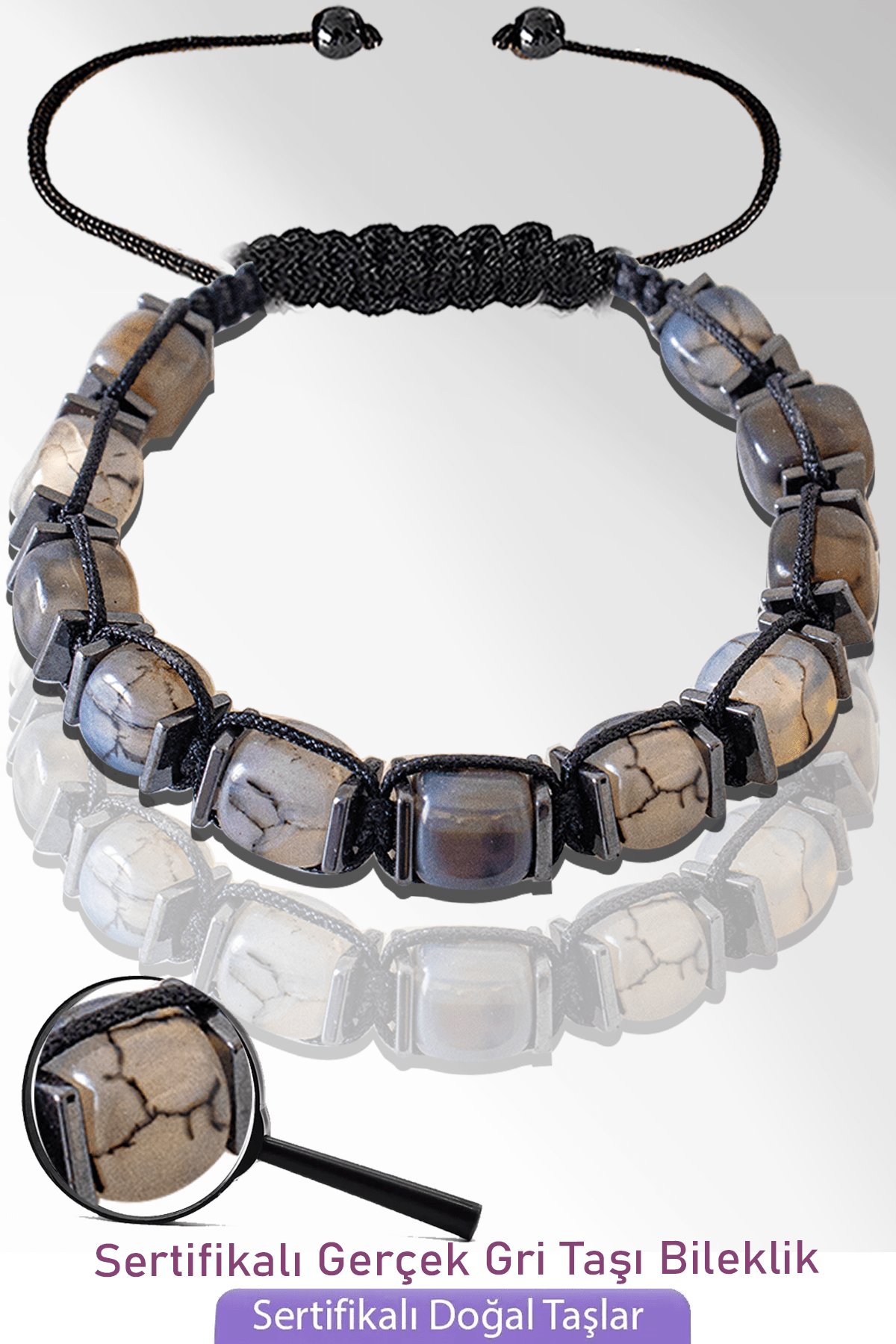 (Gri Akik Doğal Taş Bileklik - %100 doğal ve sertifikalı)