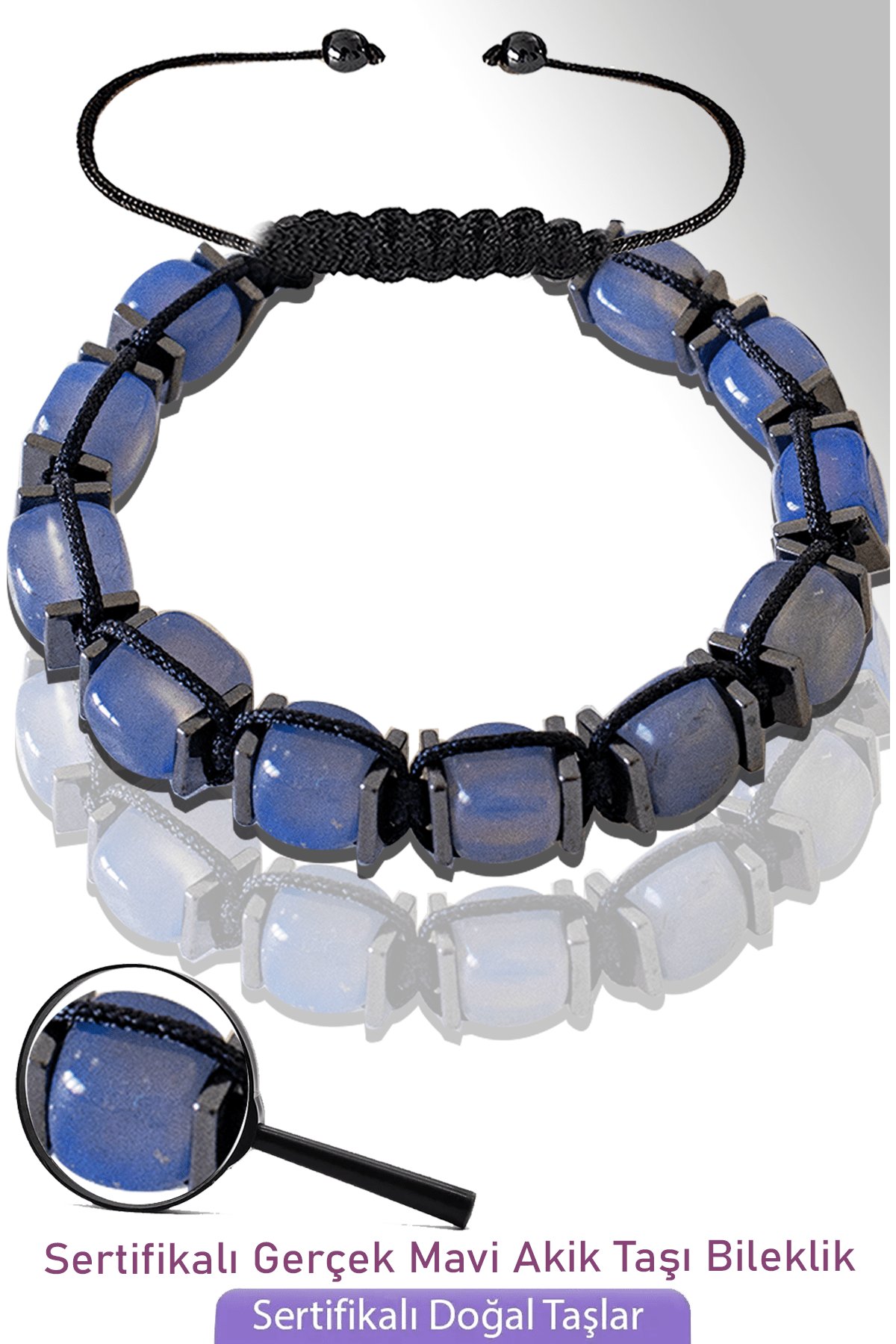Sertifikalı Küp Model Doğal İspirto Moru Akik Taşı Bileklik - Ayarlamalı