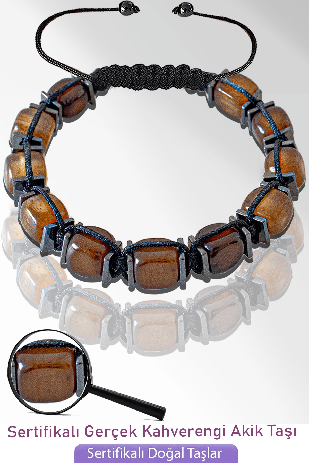 (Kahverengi Akik Doğal Taş Bileklik - %100 doğal ve sertifikalı)