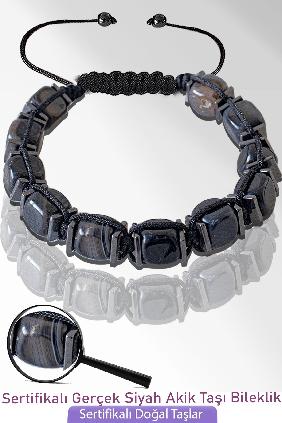 (Siyah Akik Doğal Taş Bileklik - %100 doğal ve sertifikalı)