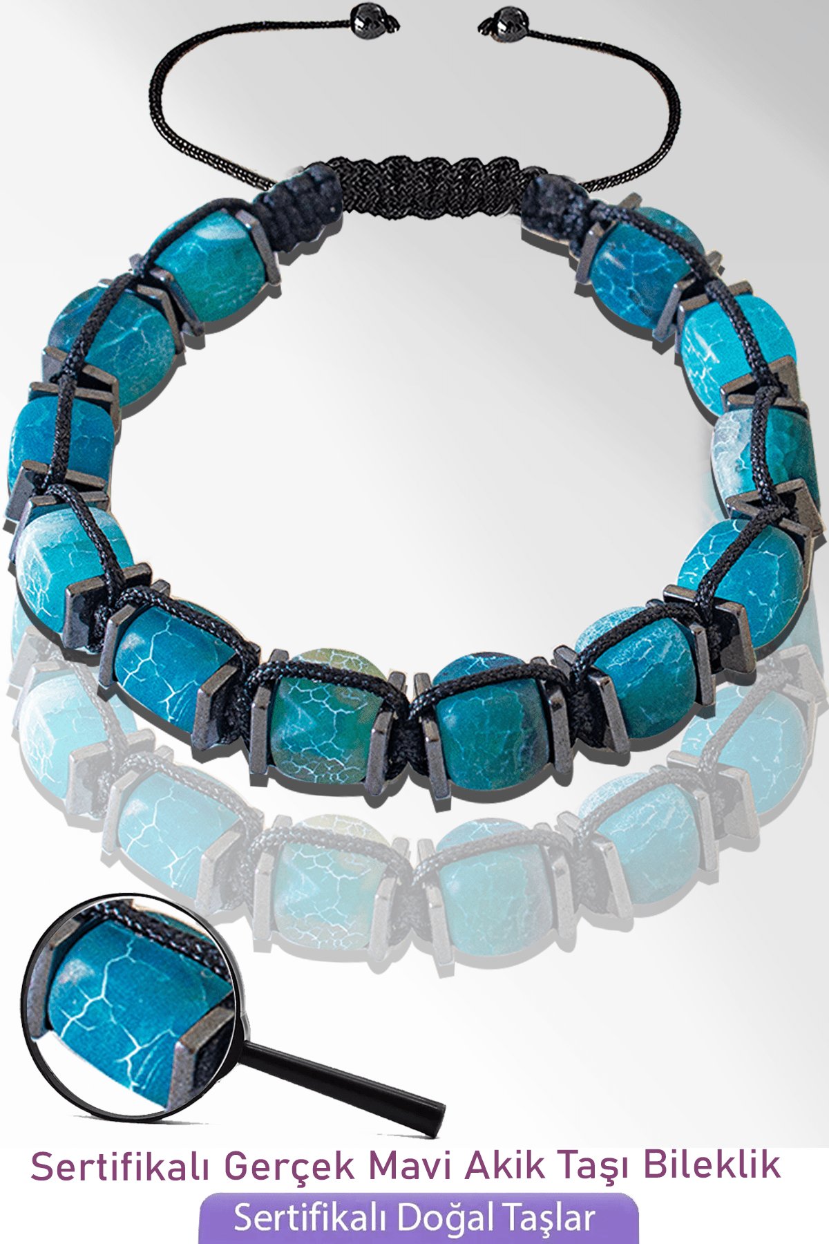 (Mavi Akik Doğal Taş Bileklik - %100 doğal ve sertifikalı)